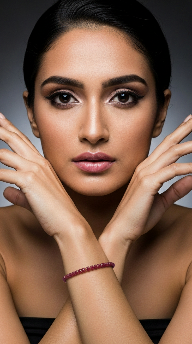 925 Sterling Silver Natural Ruby Beaded Bracelet – Minimalist Gift for Her