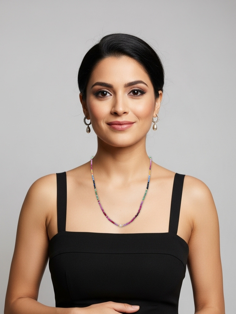 925 Sterling Silver Ruby & Sapphire Beaded Necklace – Gift for Her