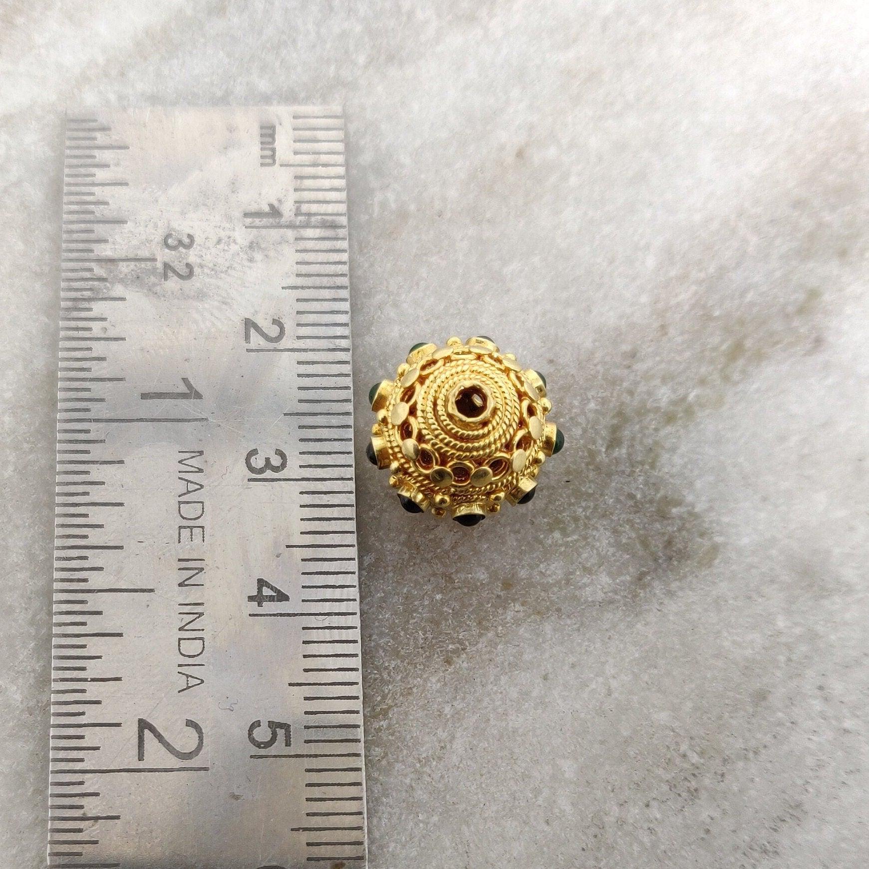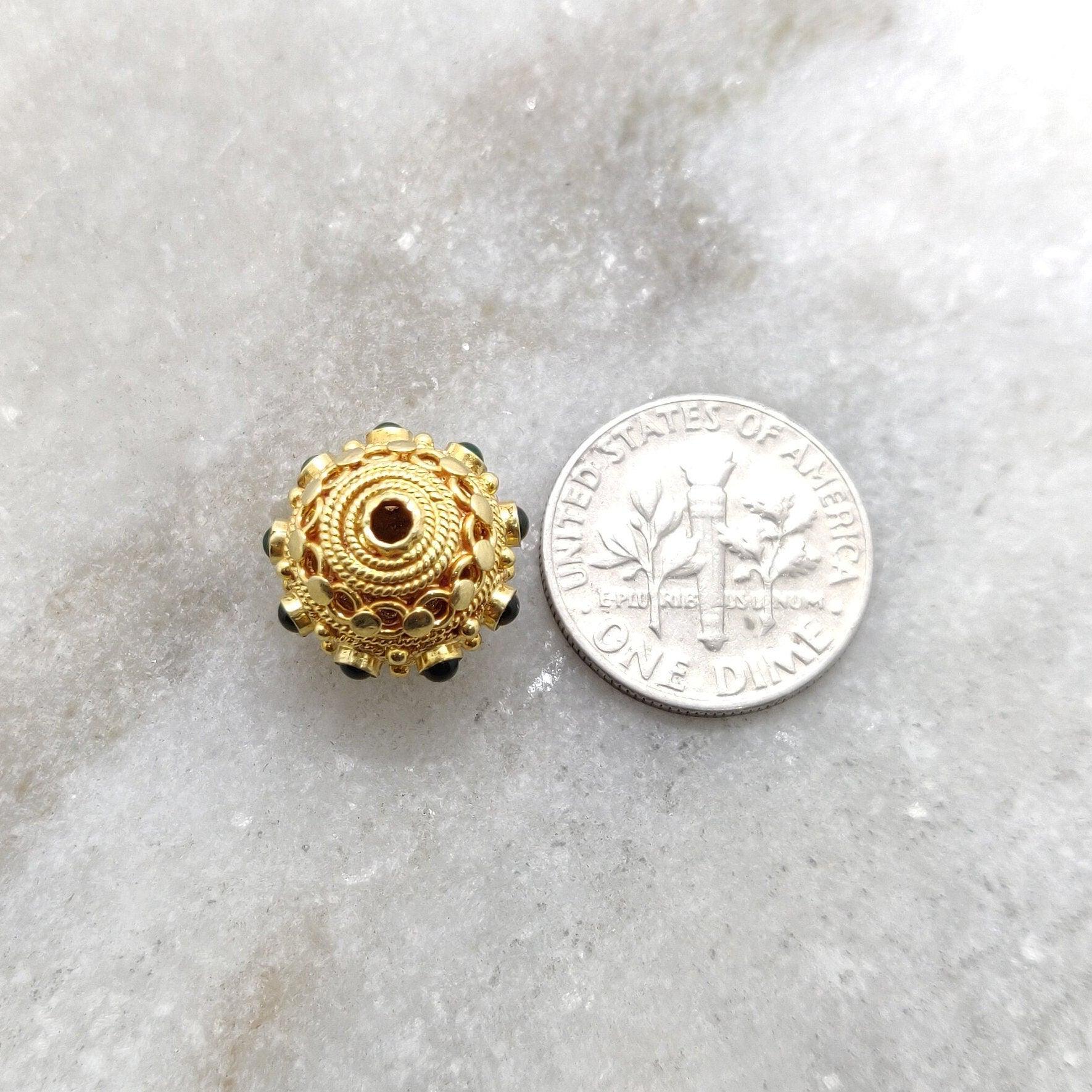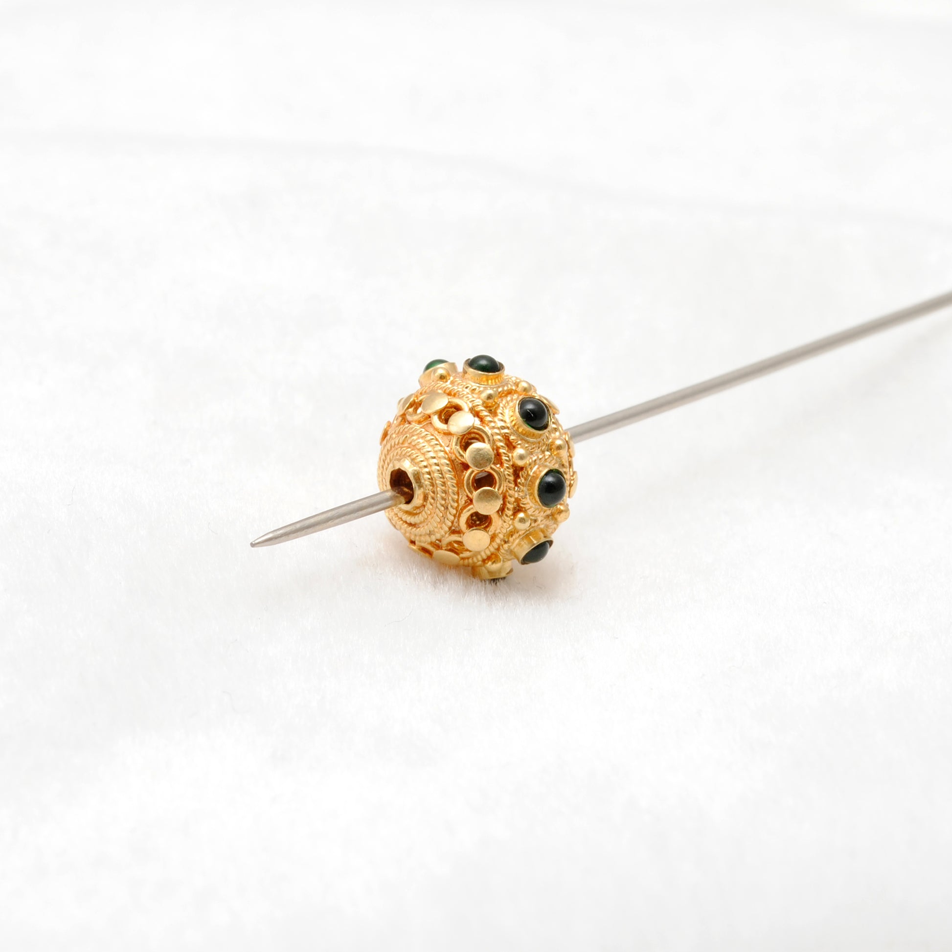 Crafted with 18K gold, this 13x11mm emerald round bead spacer adds elegance and versatility to any jewelry design. Elevate your creations with this luxurious bead.