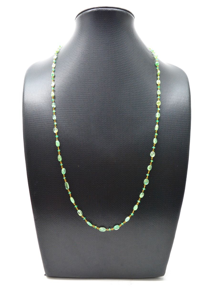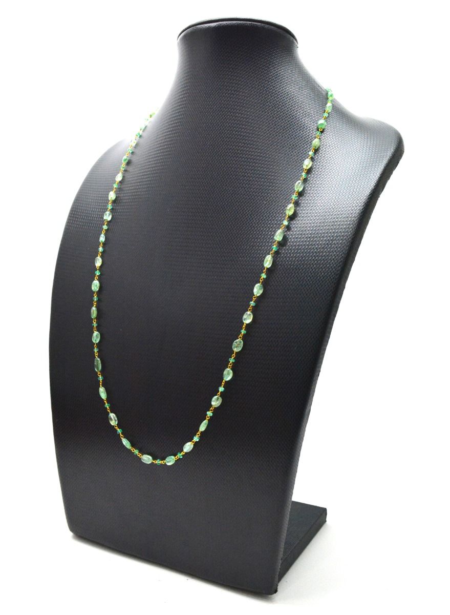14k Solid Gold Necklace Studded With Natural Emerald Stone produced with a special design and durable special thread.