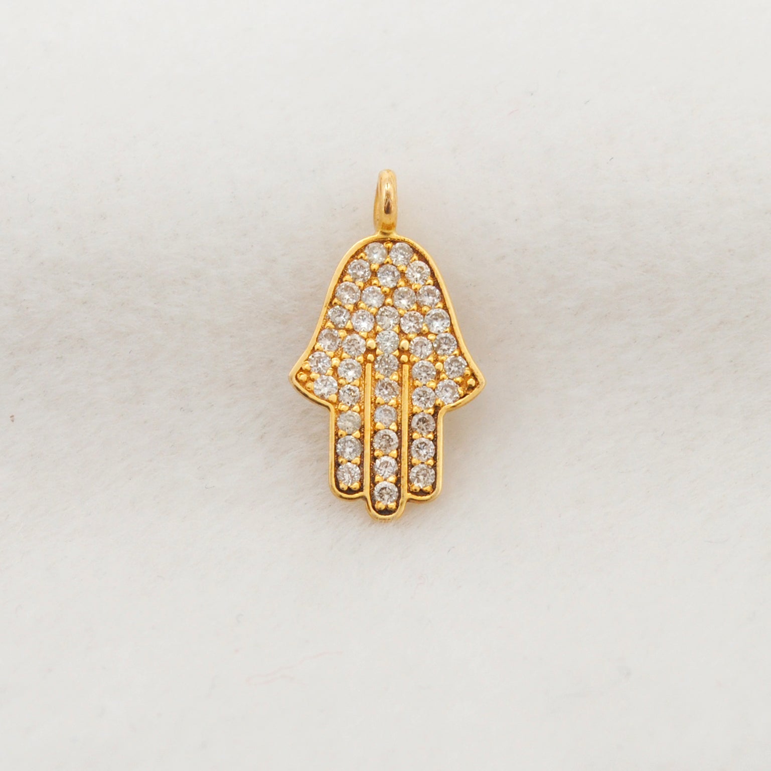 14 karat Solid Yellow Gold White Diamond Hamsa Hand Charm 16mm
