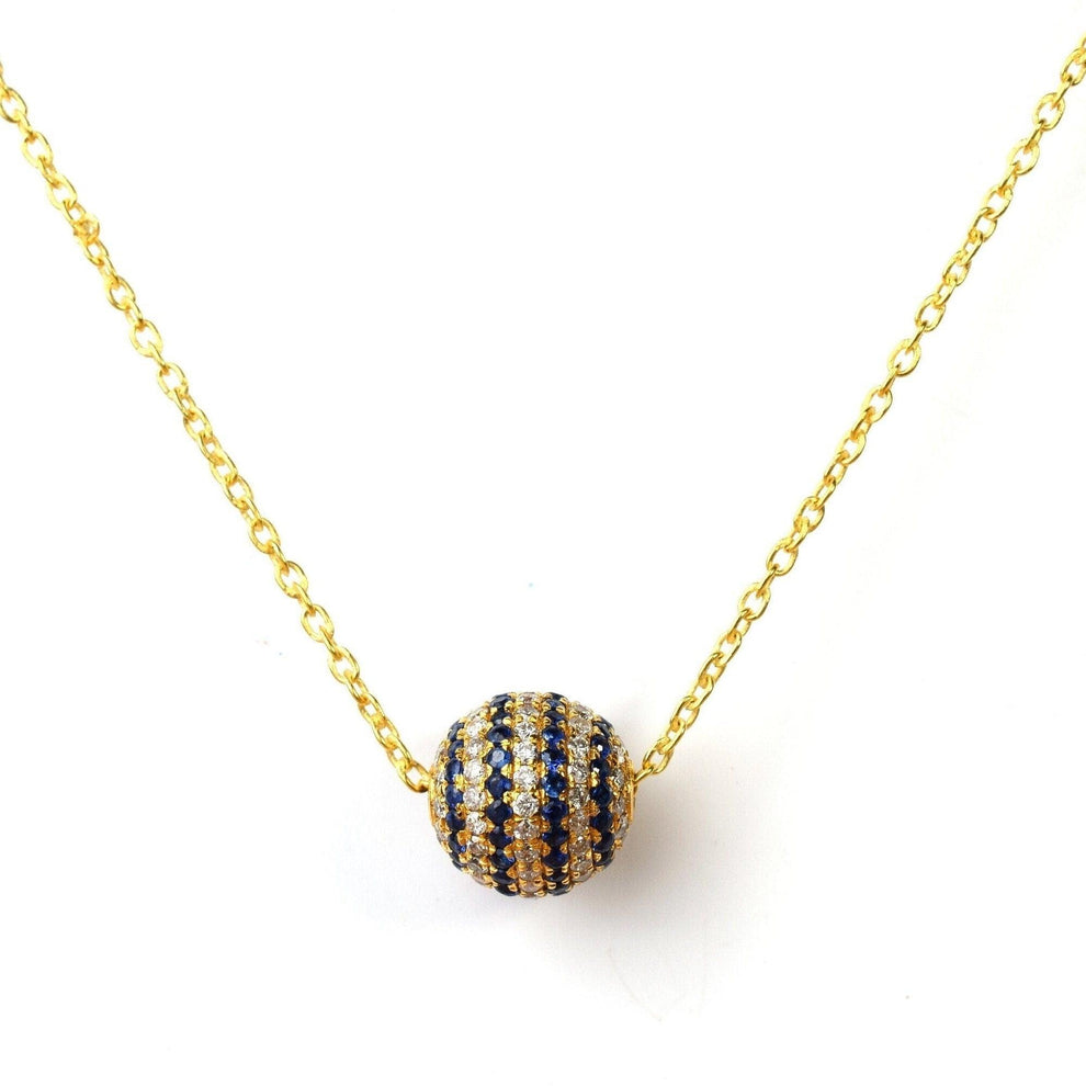 Featuring 14K gold, blue sapphires, and micro diamonds, this 8mm round ball necklace exudes luxury and sophistication. A perfect statement piece to elevate any outfit.