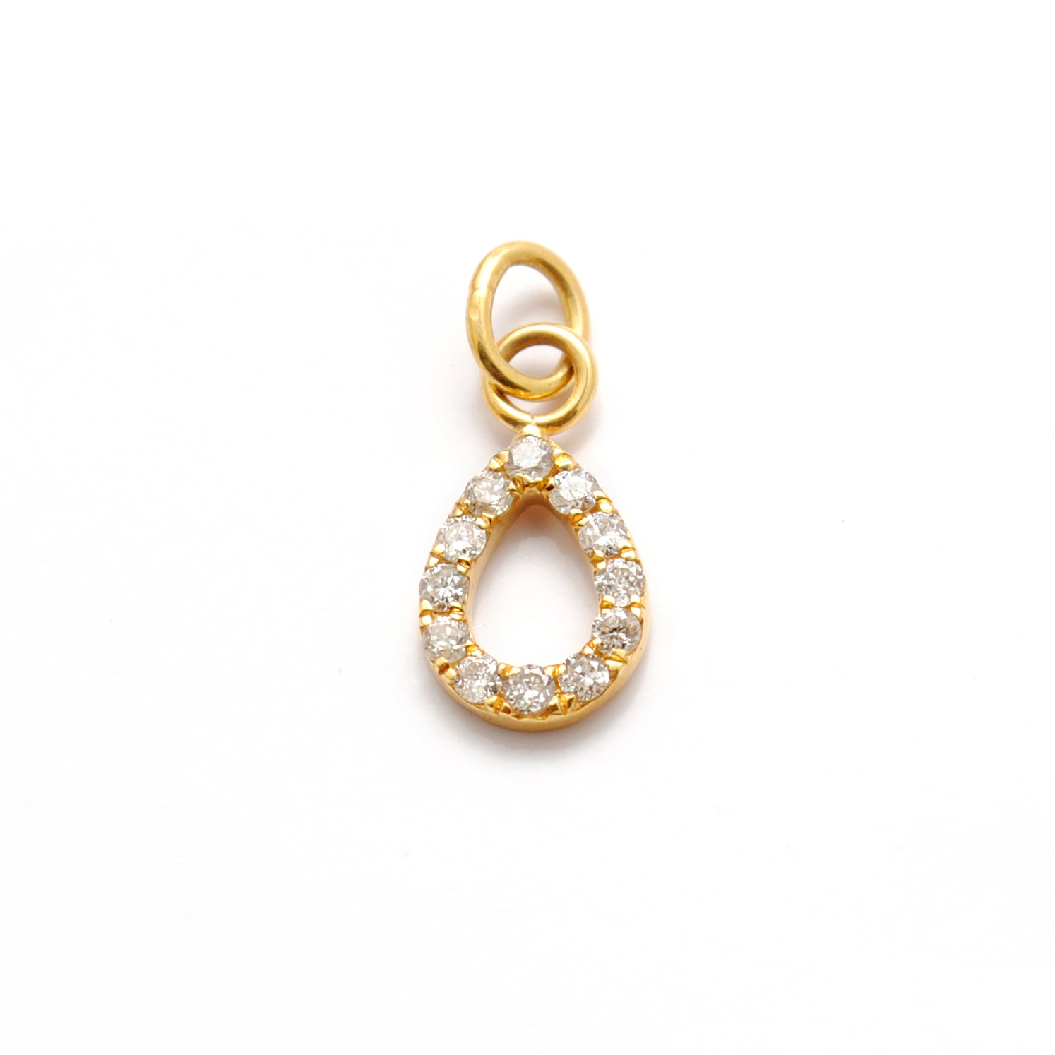 14k Solid Yellow Gold White Diamond Teardrop Charm