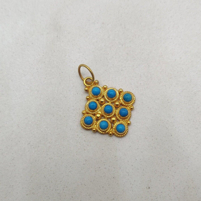 14mm solid 18k gold, this cushion pendant showcases a beautiful sky blue stone. Combining elegance and sophistication, this pendant is the perfect accessory for any occasion. Experience the timeless beauty and luxury of this stunning piece of jewelry.