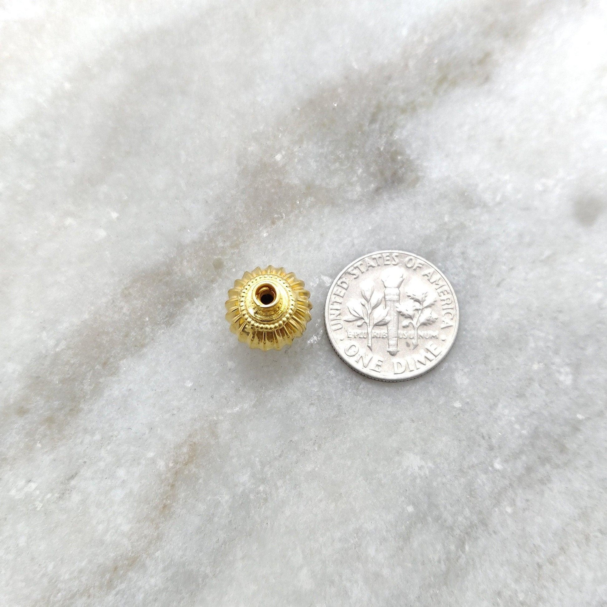 This vintage 18k solid gold round spacer bead is a stunning addition to any jewelry collection. Crafted with expert craftsmanship and quality materials, the bead adds a touch of elegance and sophistication to any bracelet or necklace.