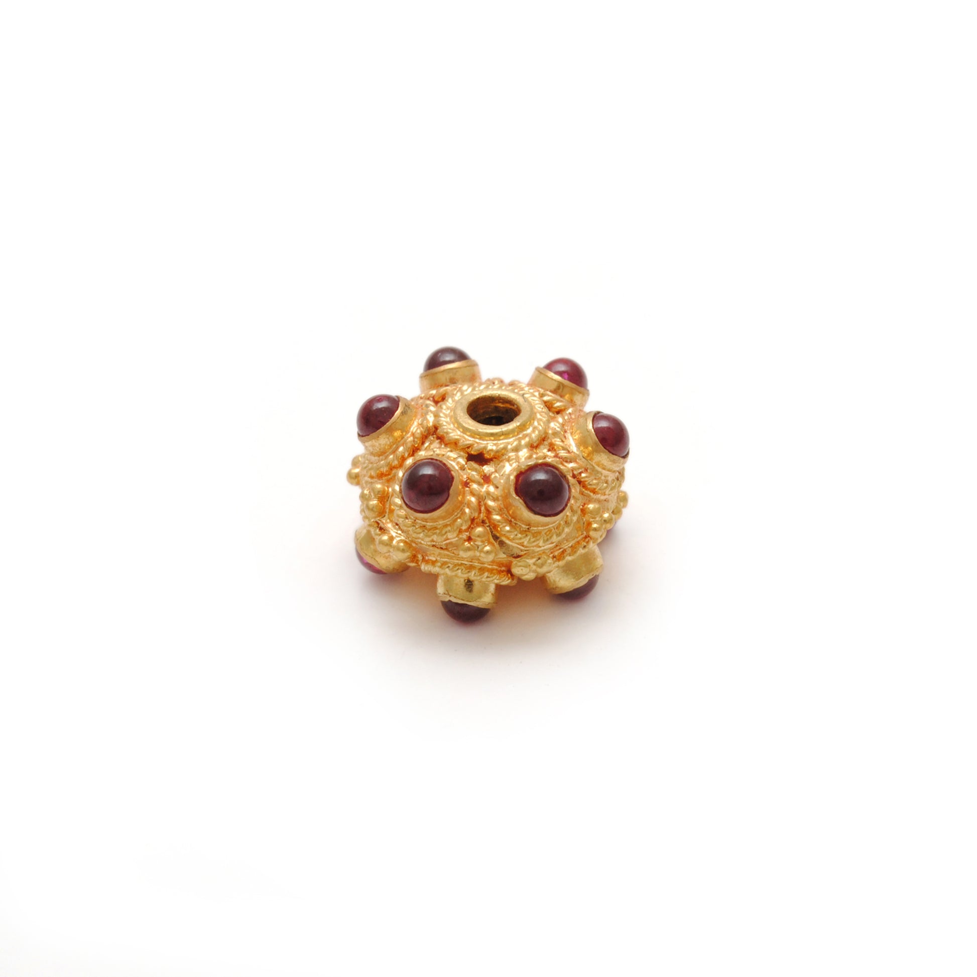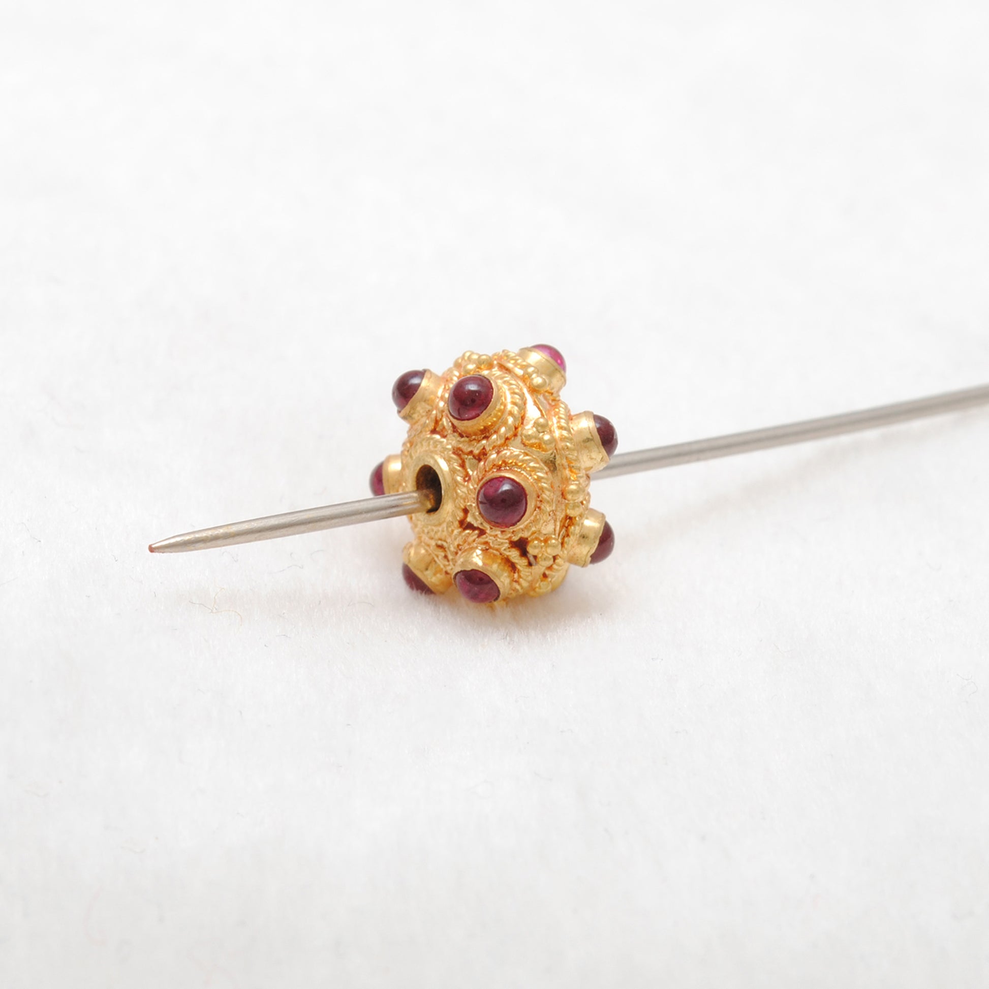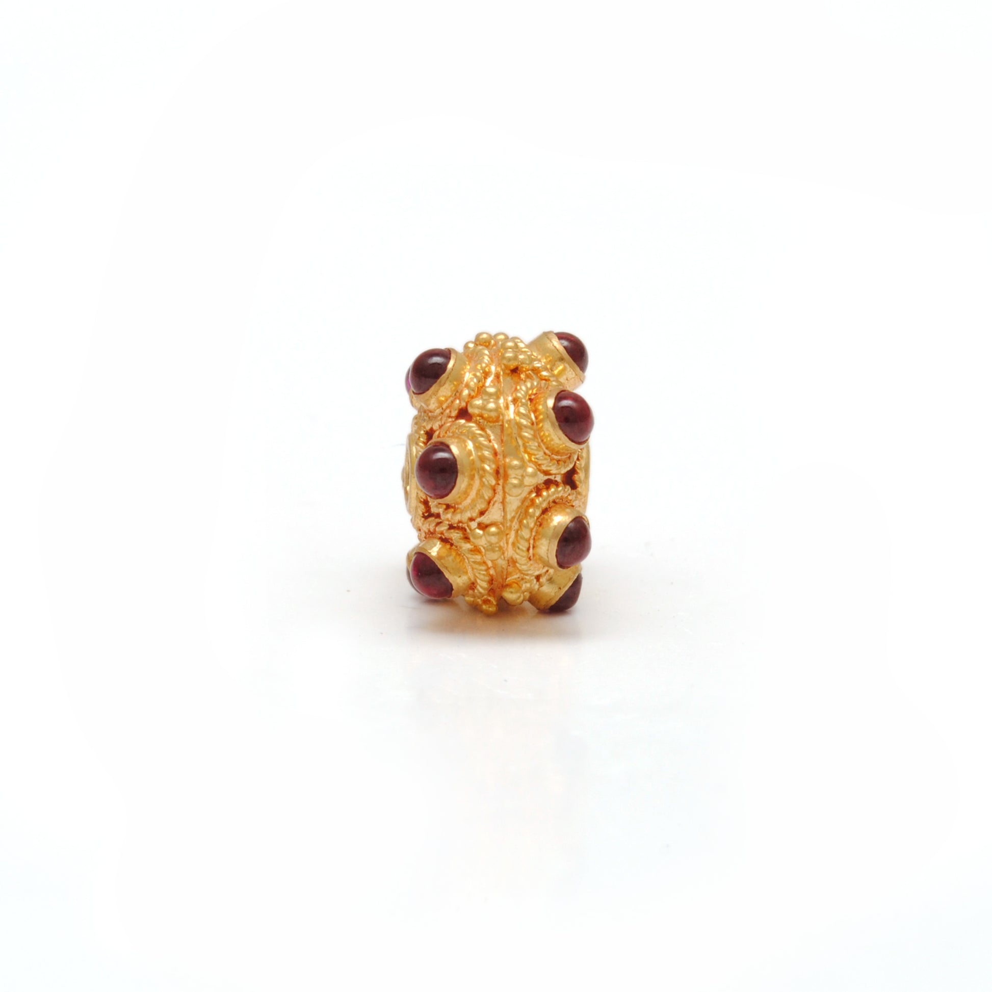 Expertly crafted with 18k solid yellow gold and adorned with stunning ruby pumpkin beads, these 11x7mm beads are a luxurious addition to any jewelry collection. Experience the timeless beauty and elegance of genuine gold and ruby, perfect for adding a touch of sophistication to any outfit.