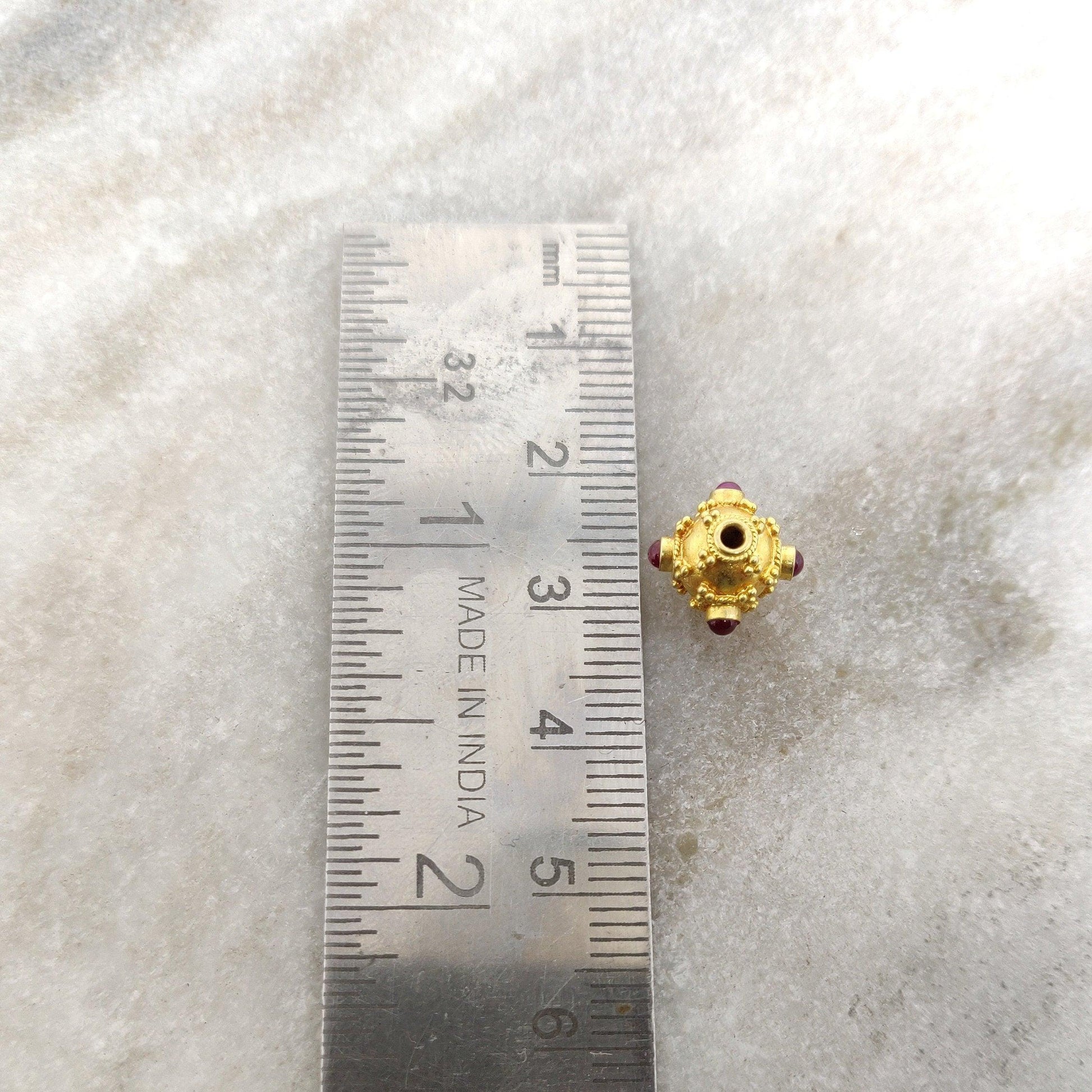 Expertly crafted with 18k gold and vibrant ruby gemstones, our 7.5mm round spacer beads are essential components for creating exquisite jewelry pieces.