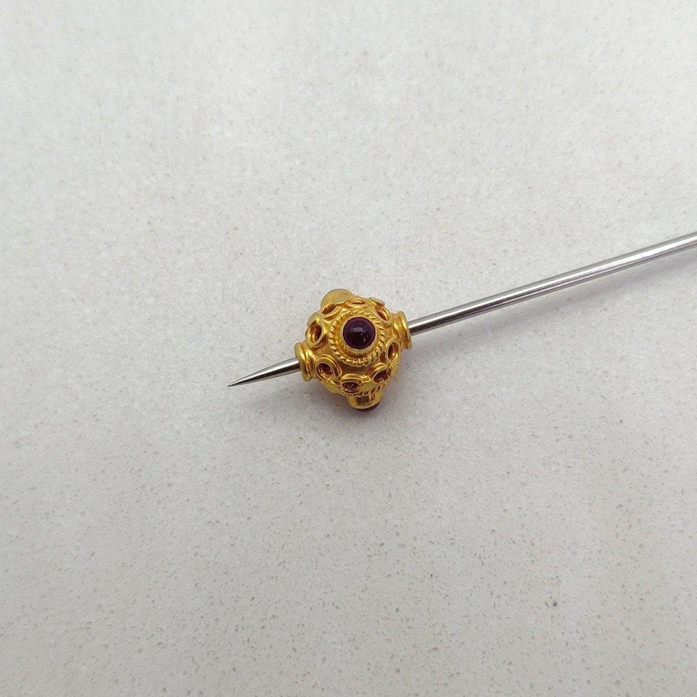 This 9MM vintage 18k solid gold round bead is perfect for creating unique and elegant pendants. Its sparkling stone accents add a touch of luxury, making it perfect for DIY craft projects.