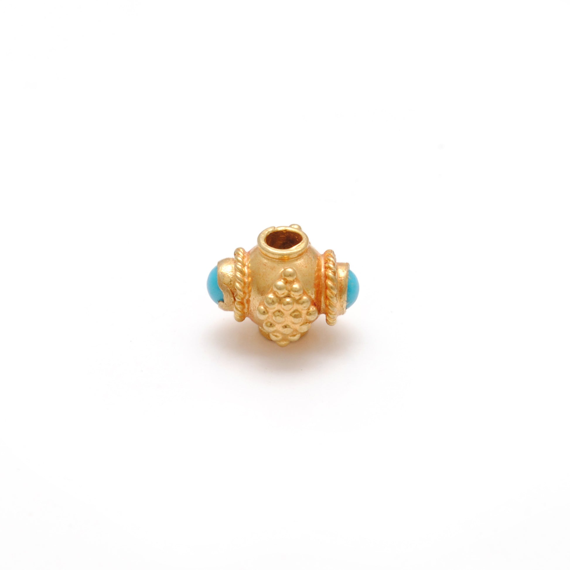 This 6mm 18k Solid Gold Turquoise Stone studded Fancy Ball Bead Finding is the perfect addition to your jewelry making collection. Crafted with top-quality materials, this finding offers both durability and style. The 6mm size and stunning turquoise stone add a touch of elegance to any design. Upgrade your creations with this premium finding.