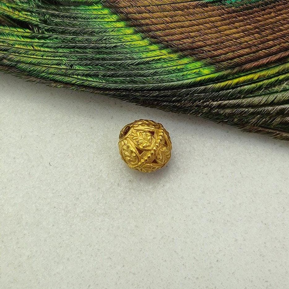18 Carat Solid Yellow Gold Antique Round Ball Gold Spacer Bead Components 8mm