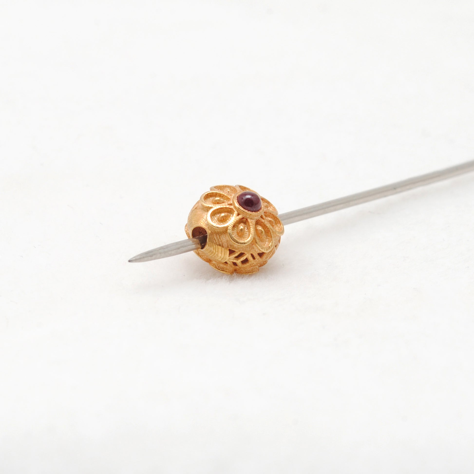Crafted with 18k gold and adorned with a beautiful red stone, these rondelle beads add a touch of elegance to any jewelry piece. Made with expertise and quality, they offer a unique and luxurious finish to your designs. Enhance your jewelry-making with these exquisite beads.