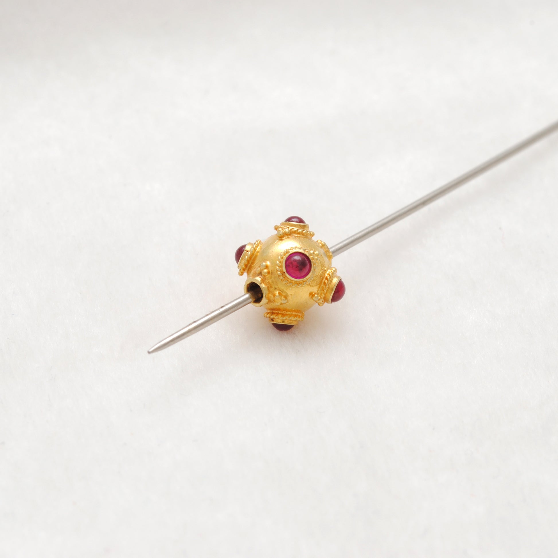 18 Karat Gold Ruby Ball Spacer Beads 11x10mm