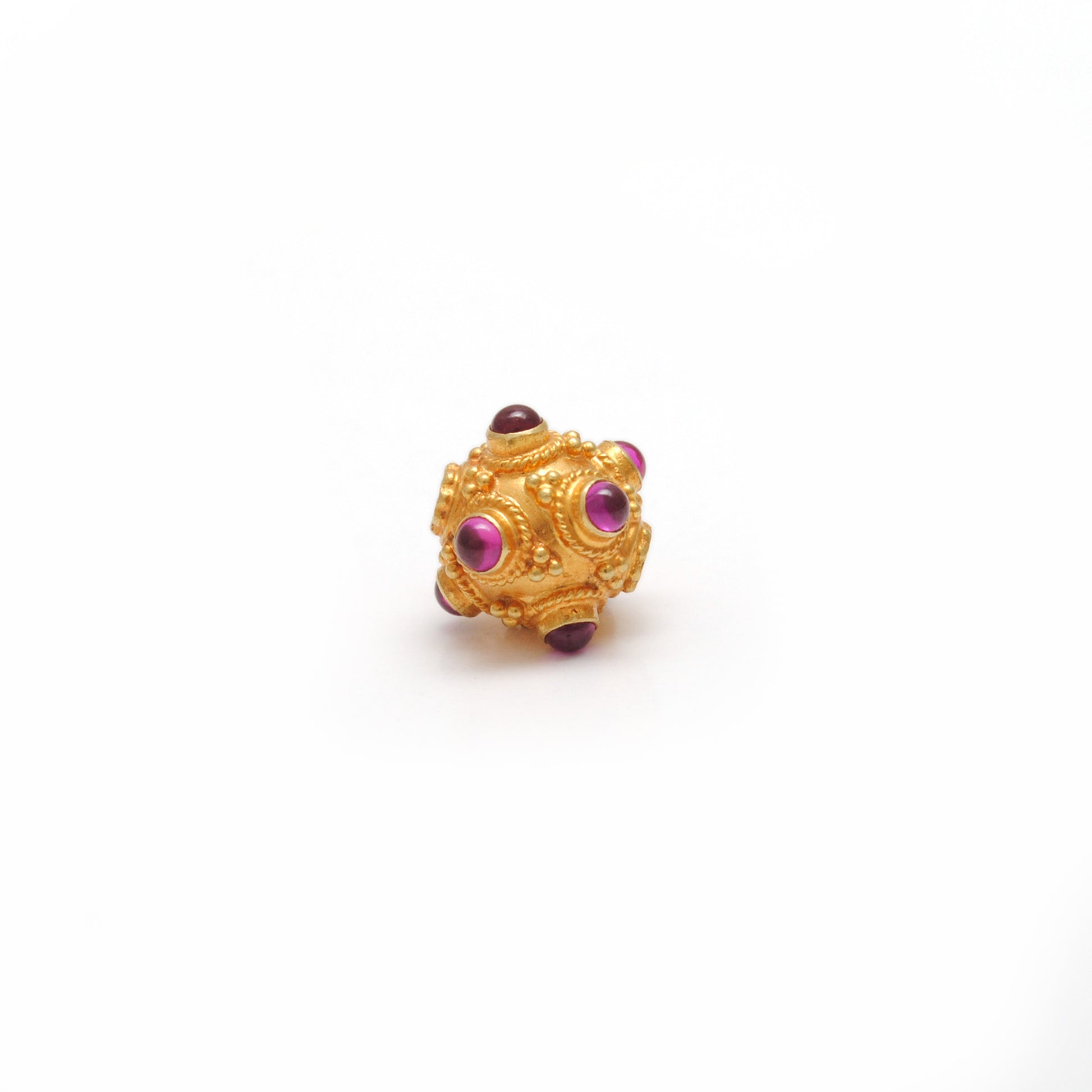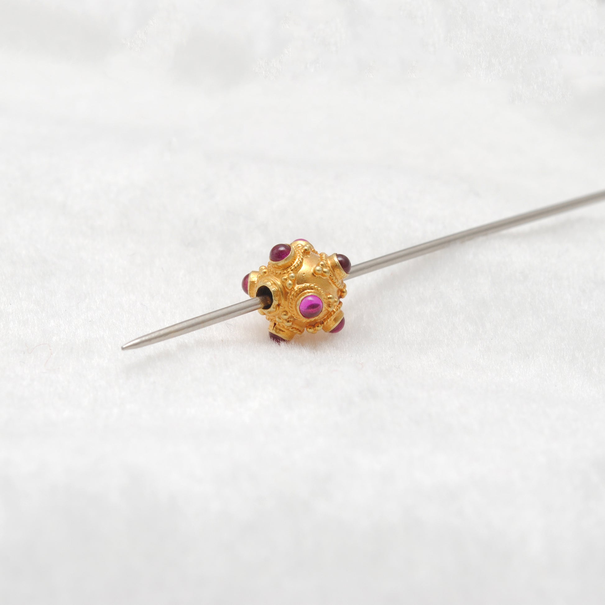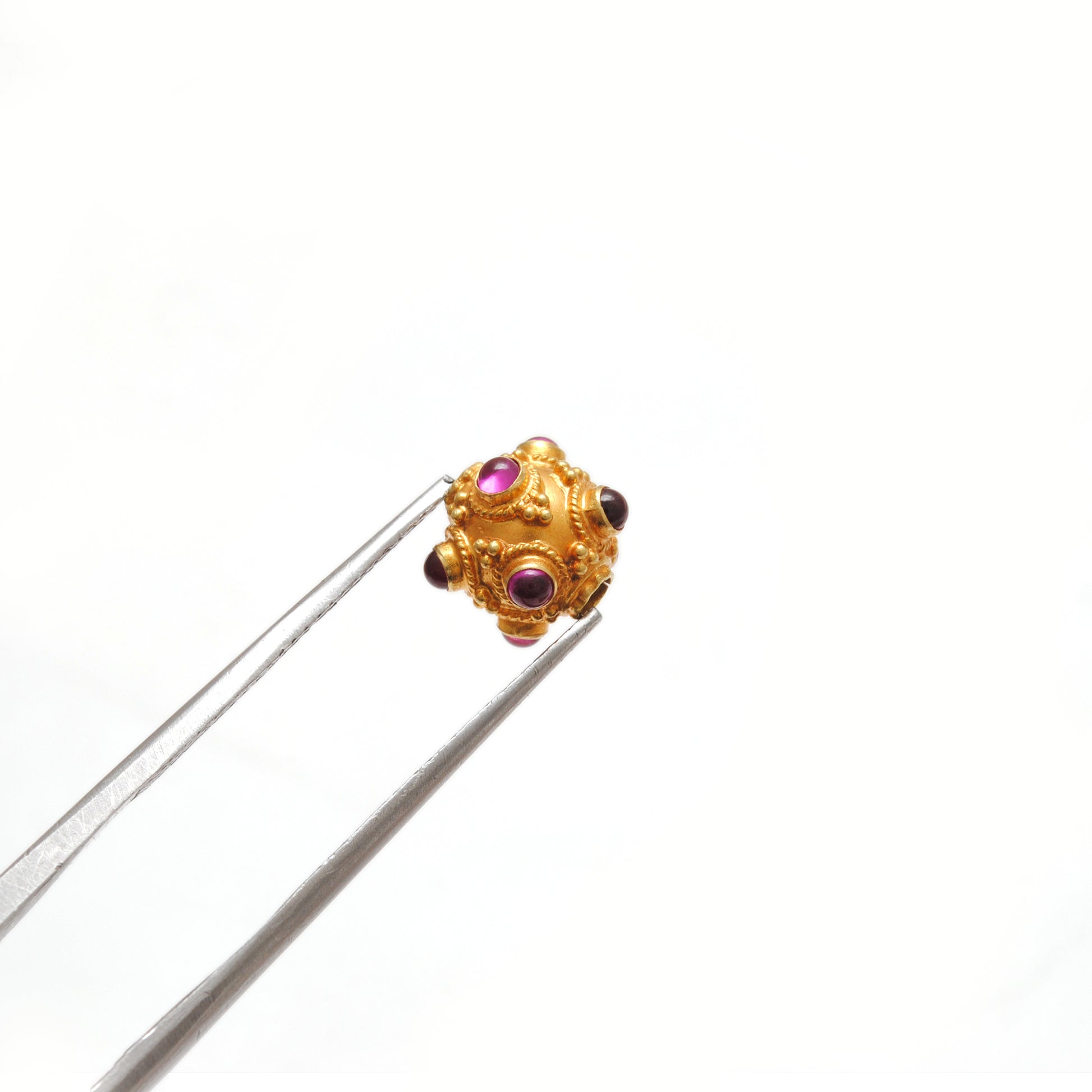 18 Karat Gold Ruby Filigree Ball Spacer Beads 8mm