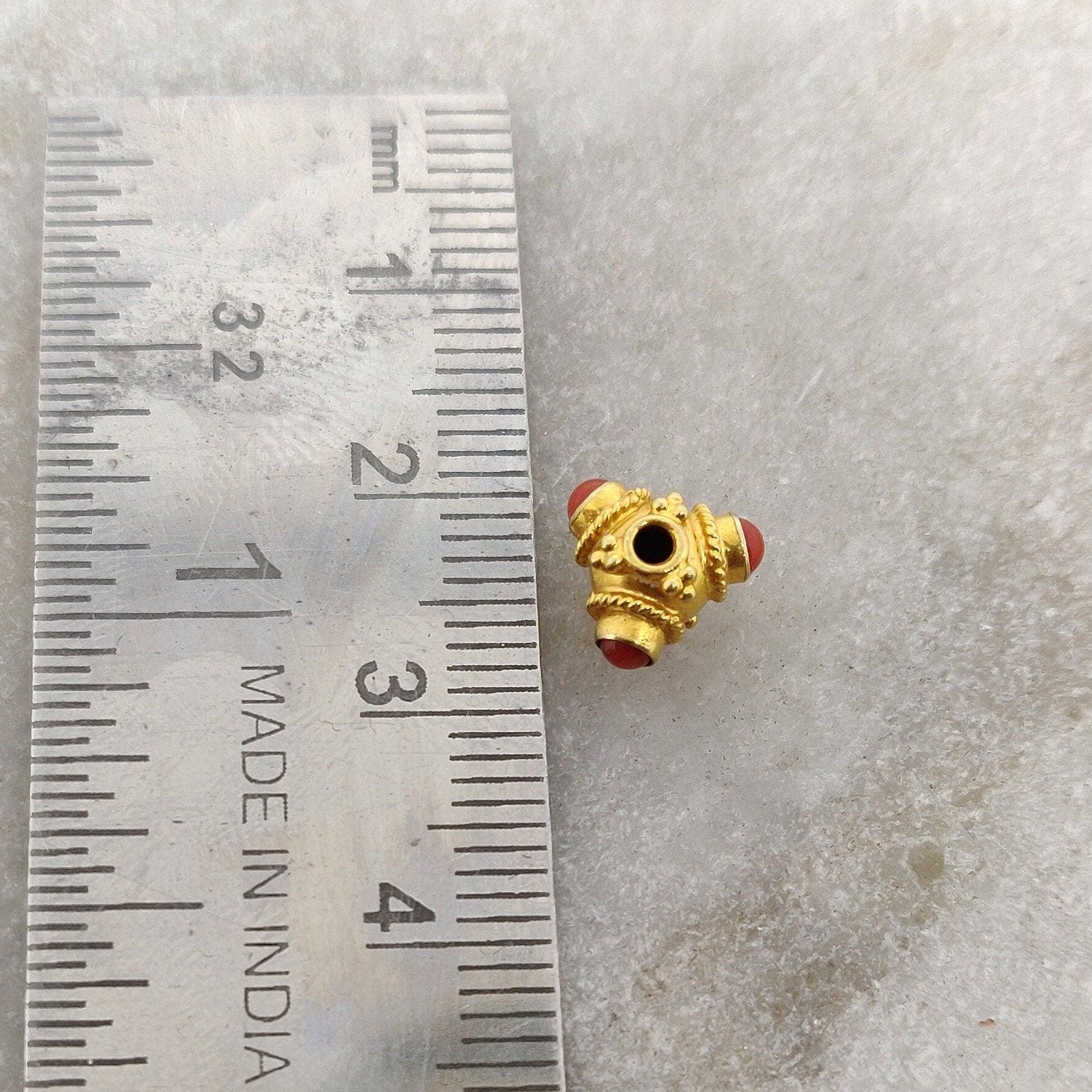 18 Karat Gold Spacer Beads Coral Stone Triangle DIY Craft