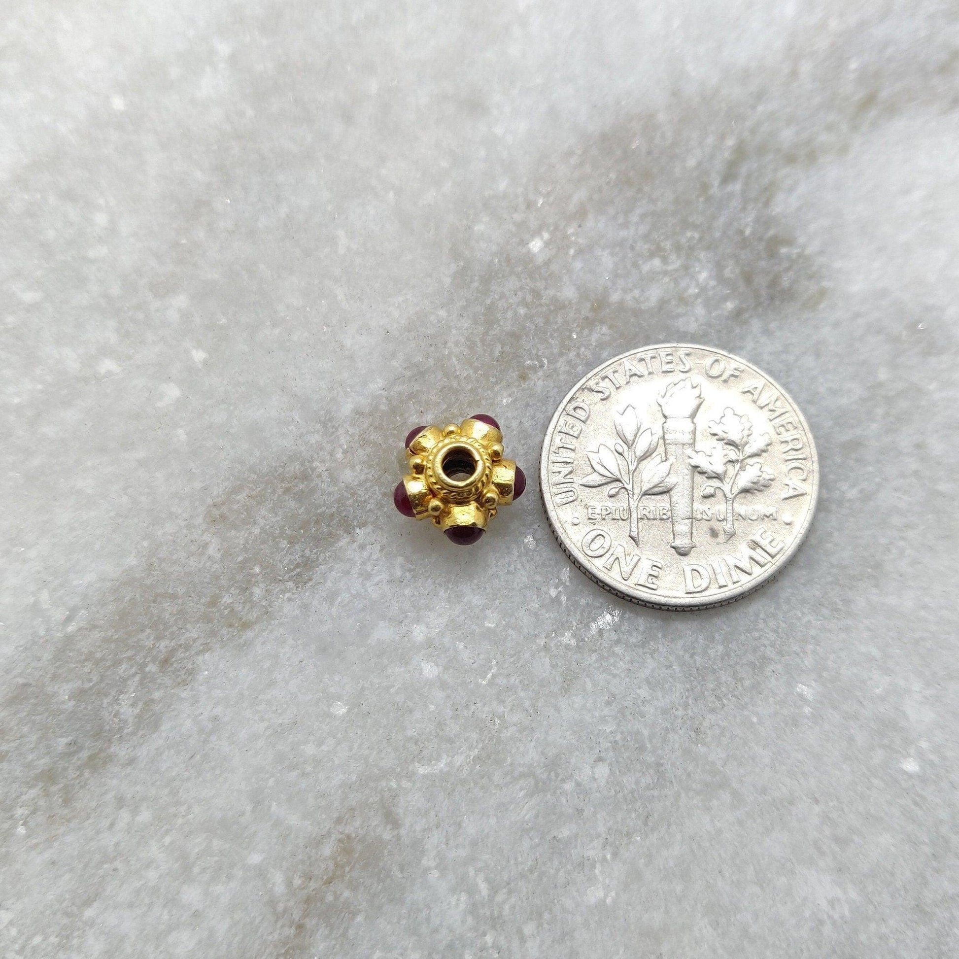 18 Karat Gold Wheel Spacer Beads with Ruby