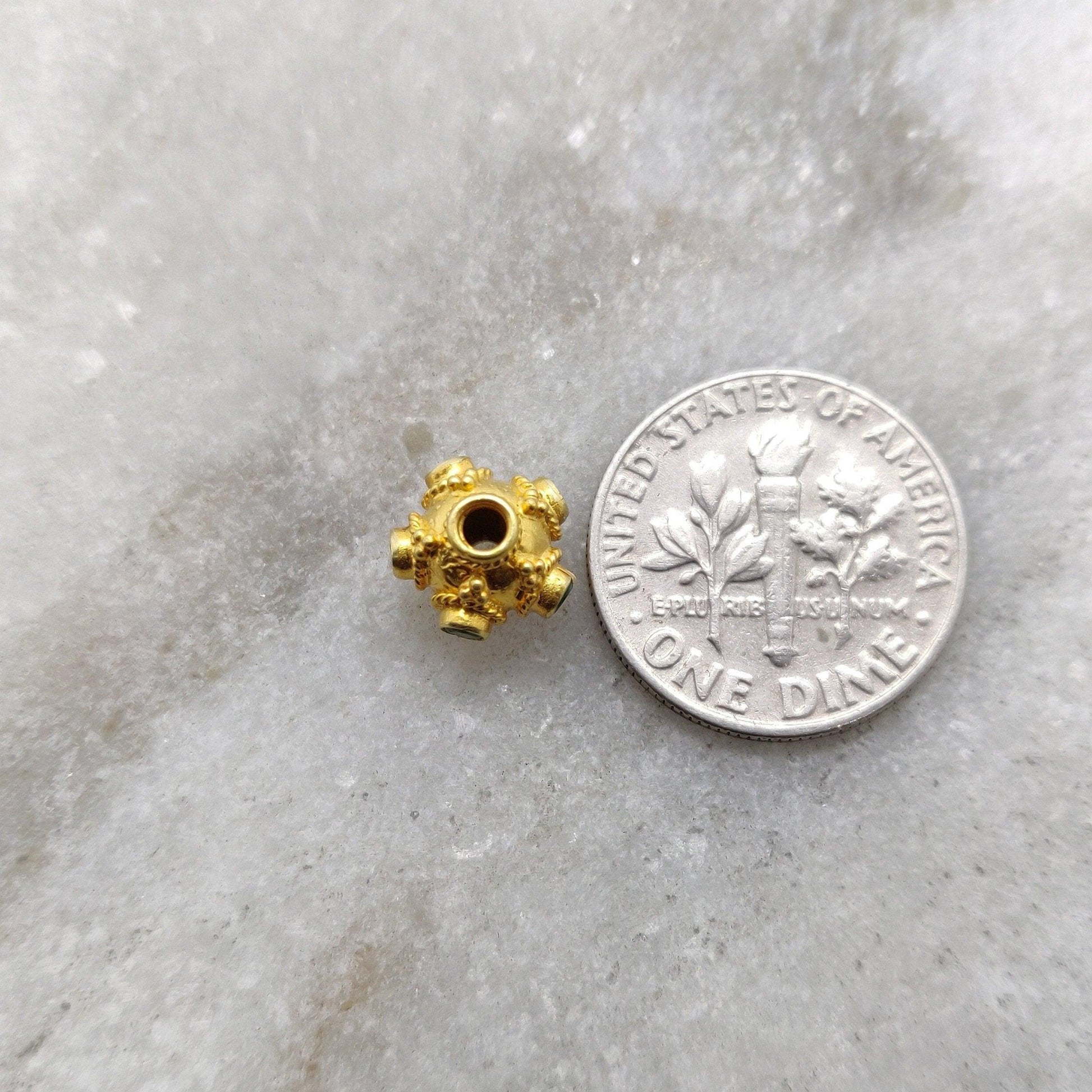 18K Gold Round Spacer Beads with Emerald
