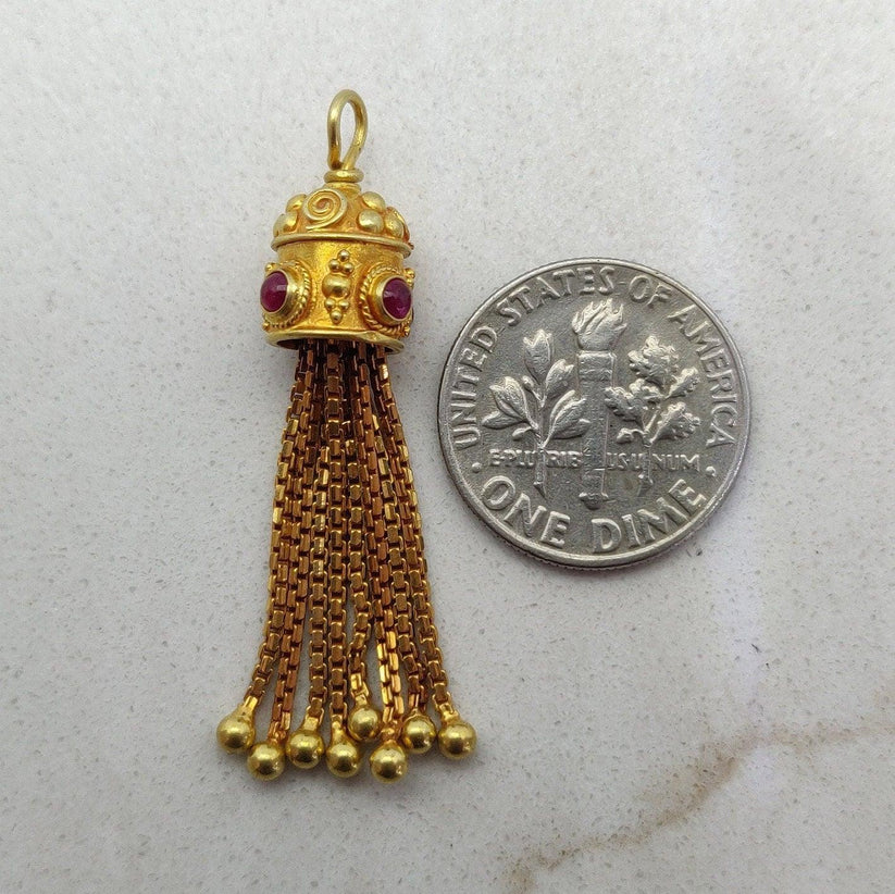18k Gold Tassel Charm Pendant With Ruby Stone