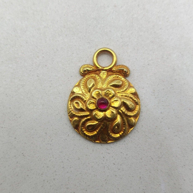 18k Solid Gold Floral Textured Ruby Pendant