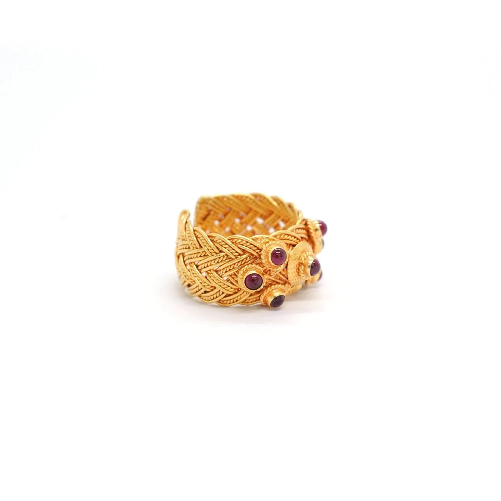 18k gold and a stunning ruby stone, this adjustable ring will add a touch of elegance to any outfit.