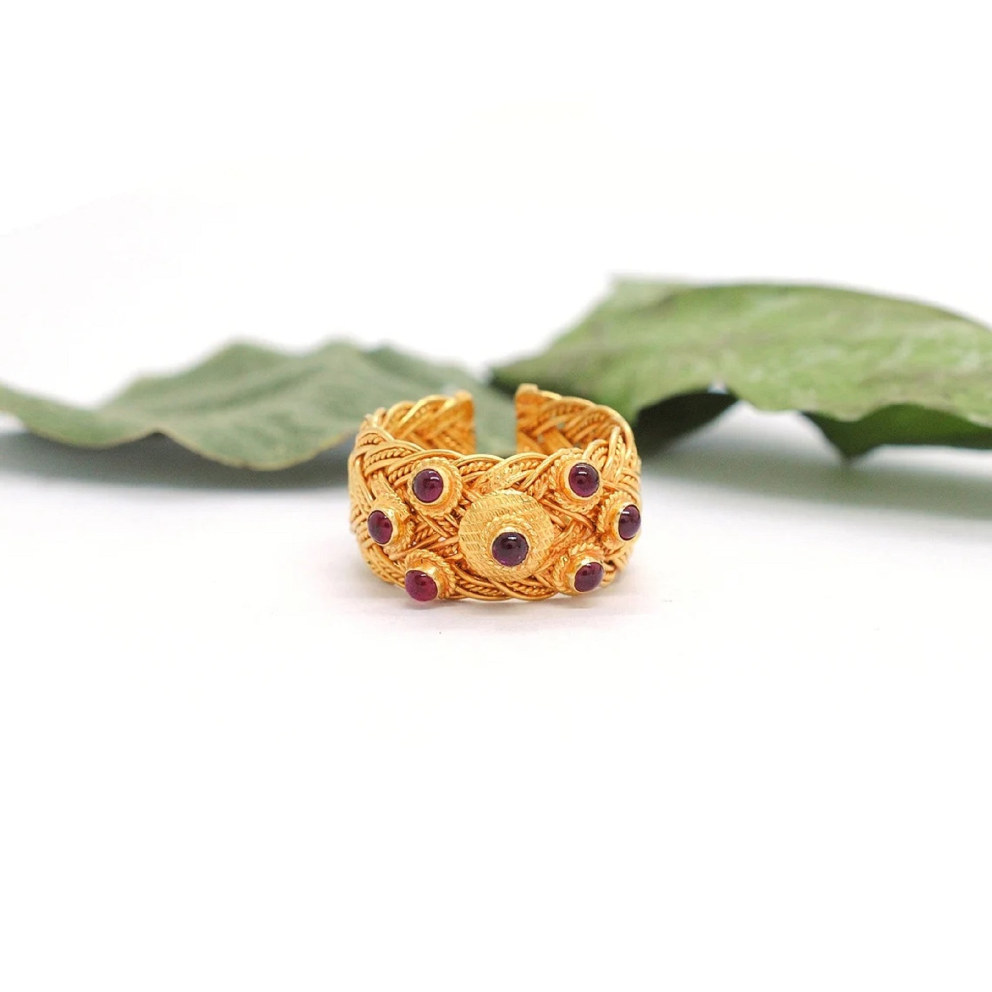 18k Solid Gold Ruby Gemstone Adjustable Band Ring – Elegant Gift for Her