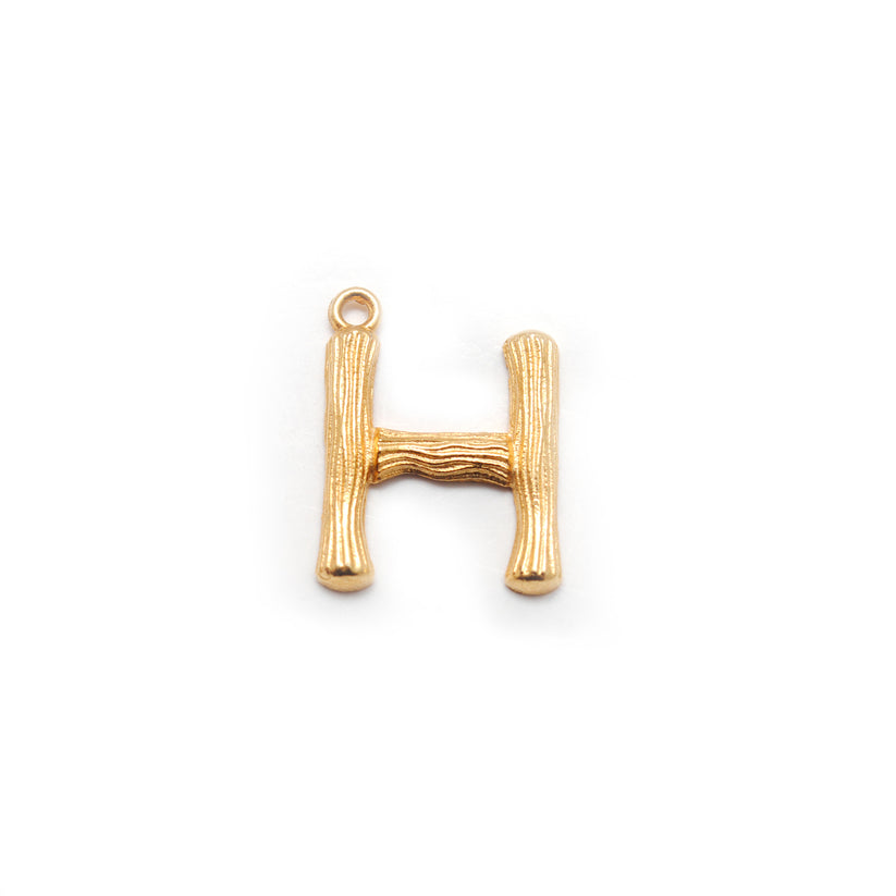 18k Solid Yellow Gold H Initial Letter Charm Pendant