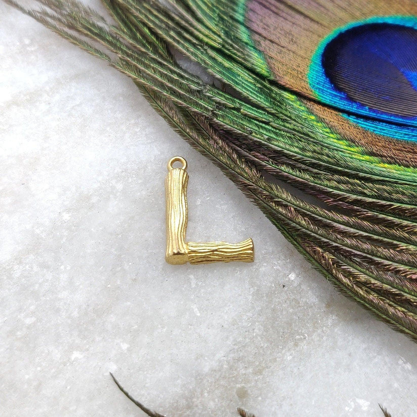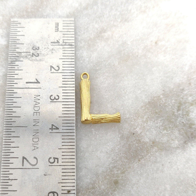 18k Solid Yellow Gold L Initial Letter Charm Pendant