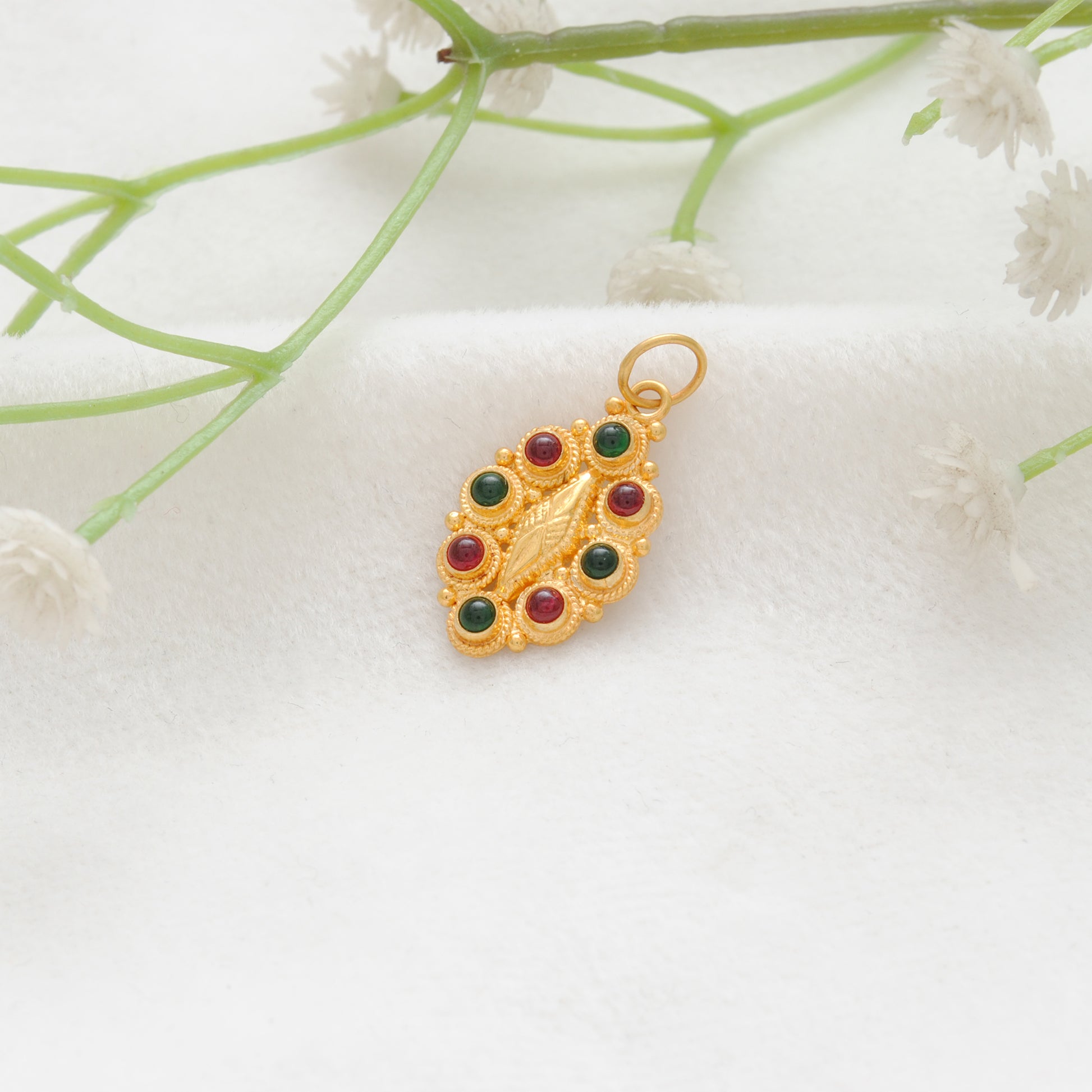 18k Solid Yellow Gold Multi-Gemstone Oval Pendant