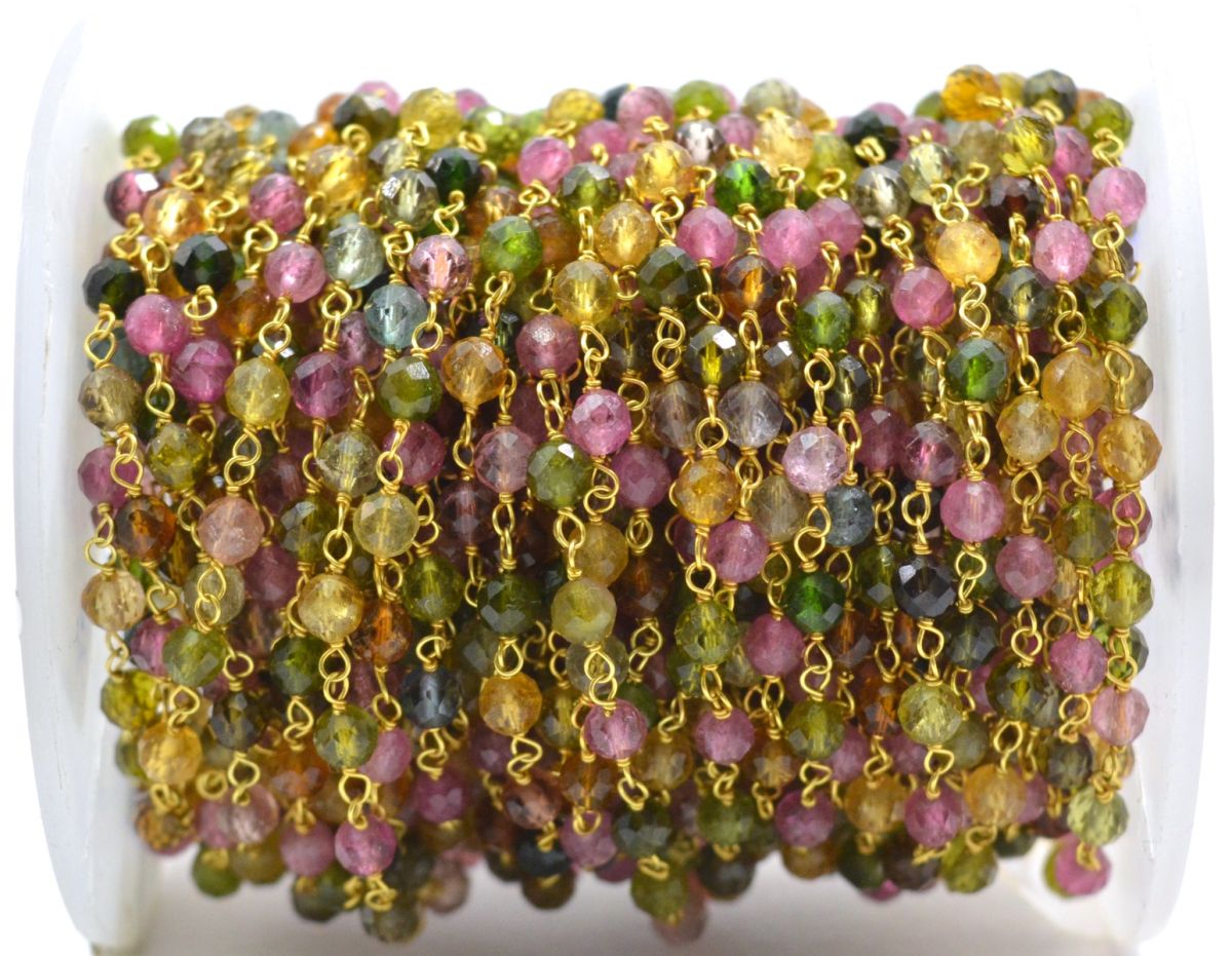 18k Solid yellow Gold Rosary Chain in AAA Quality - 3.50mm Sold By 1 Inch