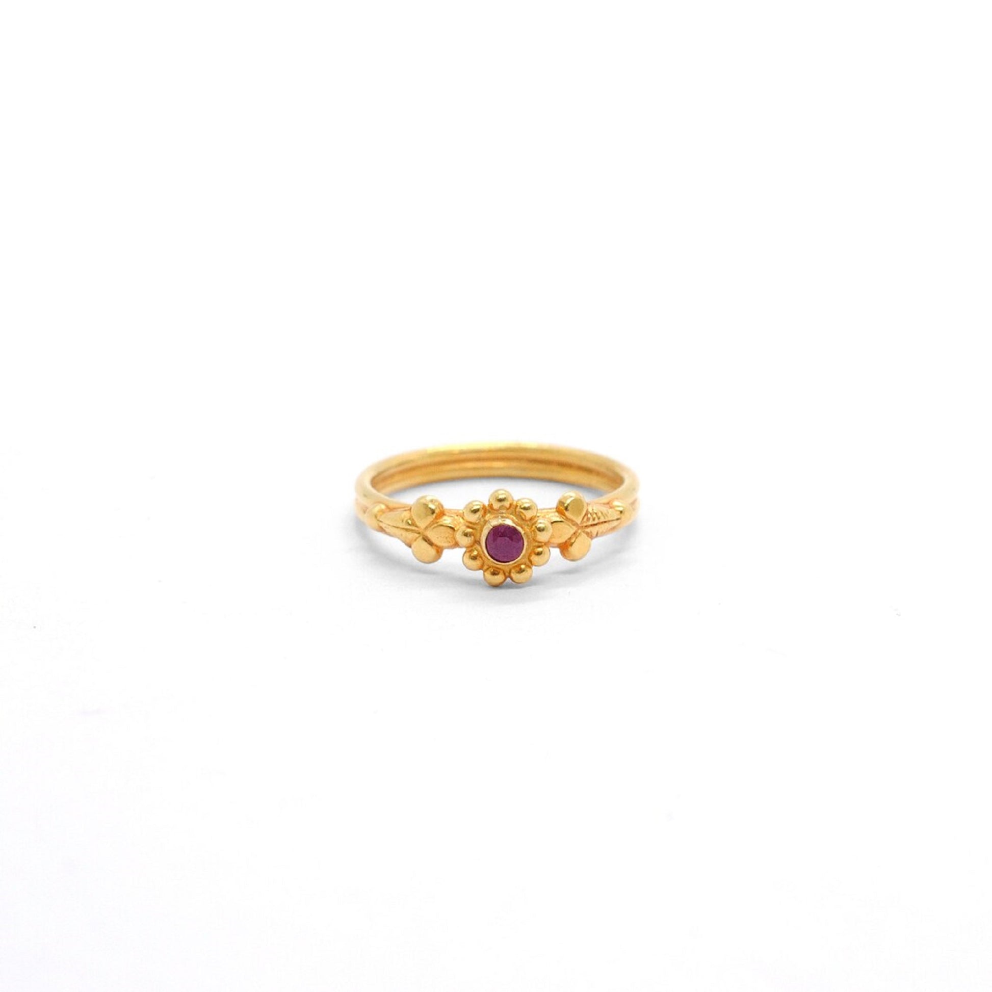 18k Solid Yellow Gold Ruby Vintage Floral Ring 6 US