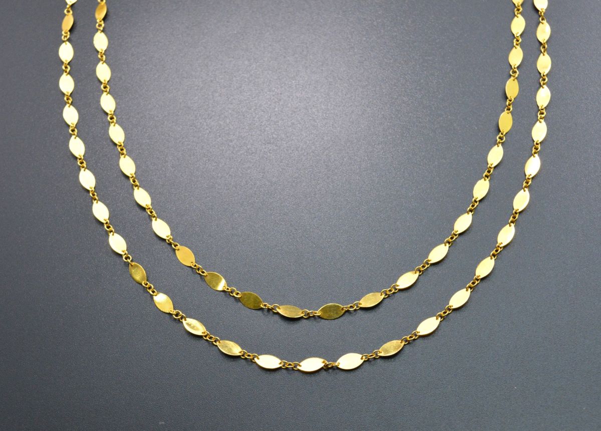 18 k Solid Yellow Gold Splendid Plain Chain, Shiny Finish 8x4MM Flat Marquise Chain.Sold by 17 cm, SGGRC-030.