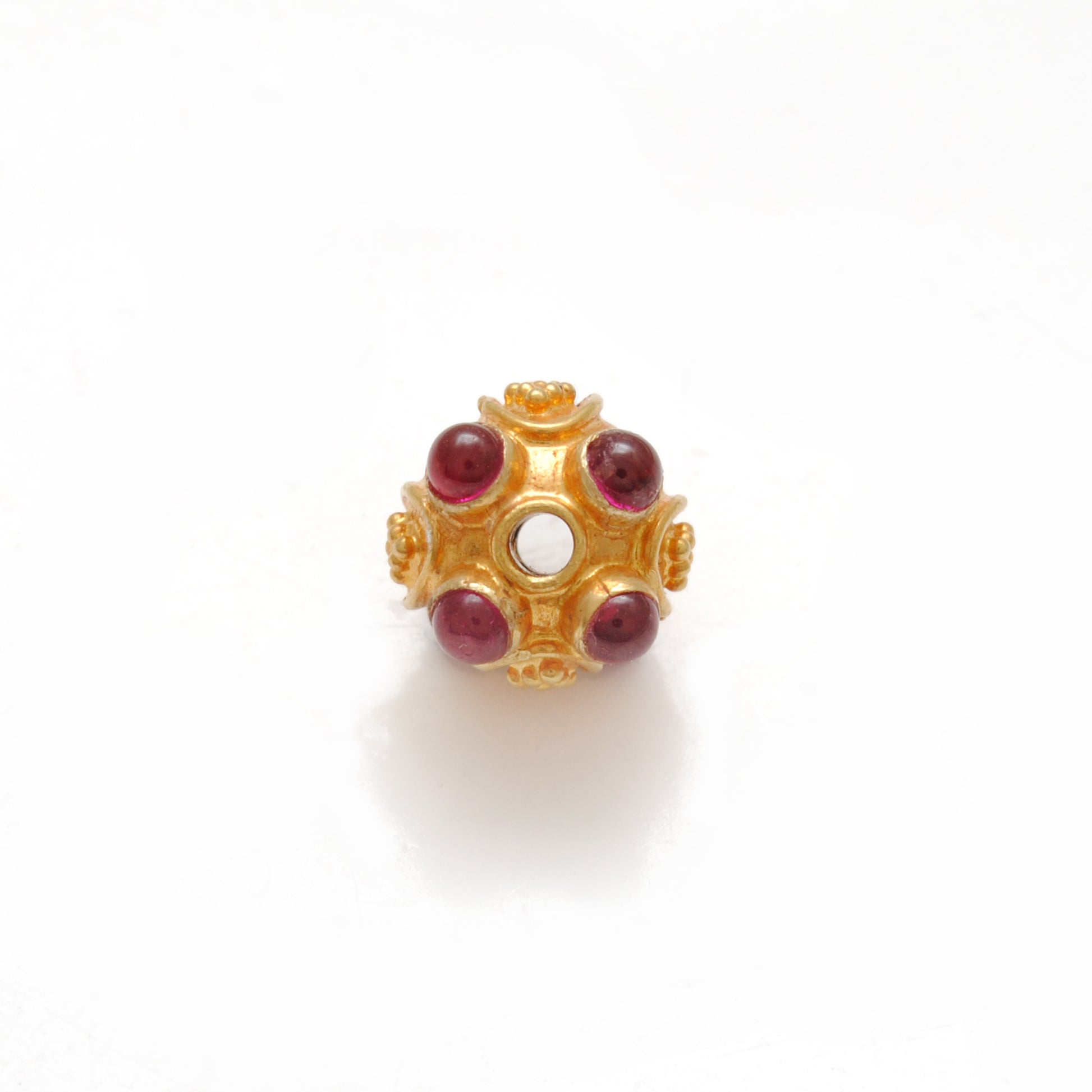 18K Solid Yellow Gold Stone Studded Round Beads 9mm