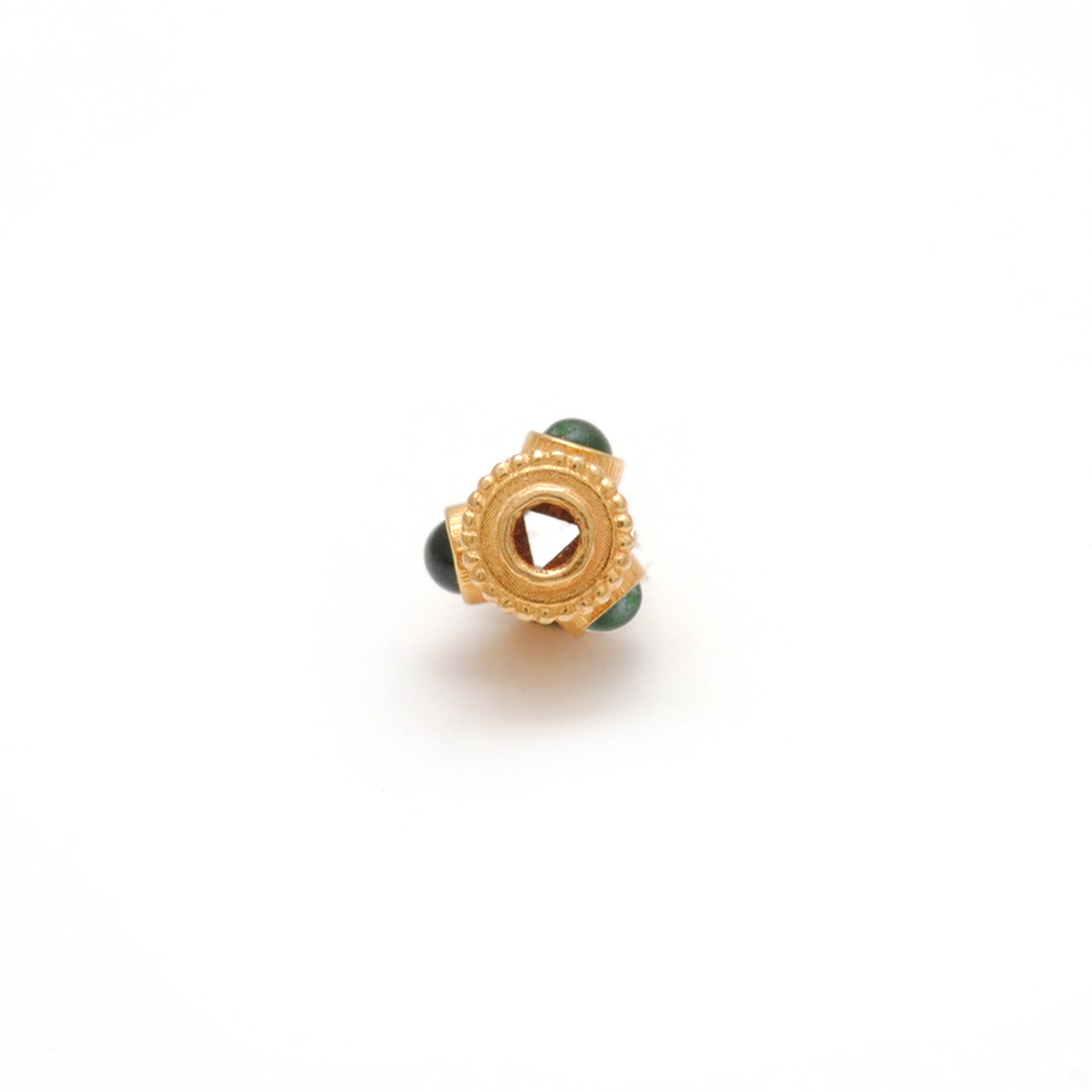 These 7X4MM 18K Yellow Gold Charm Tube Beads with Green Color Stone are a luxurious addition to any jewelry collection.