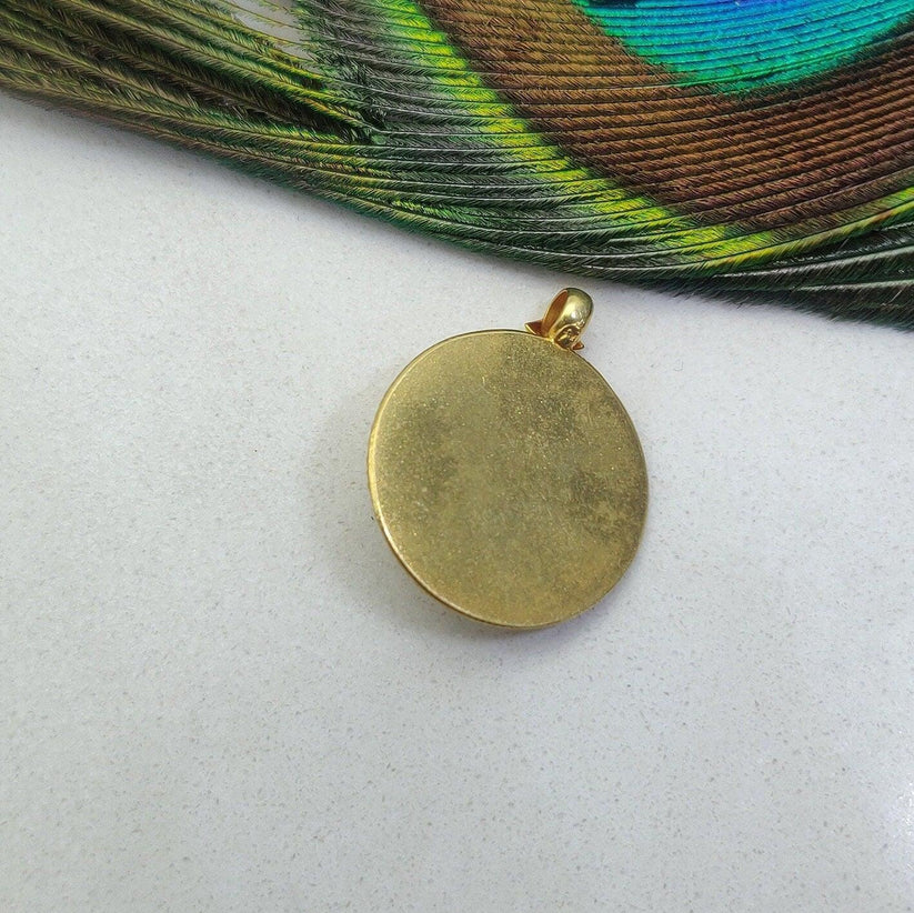 18k Solid Yellow Gold Turquoise Antique Round Pendant