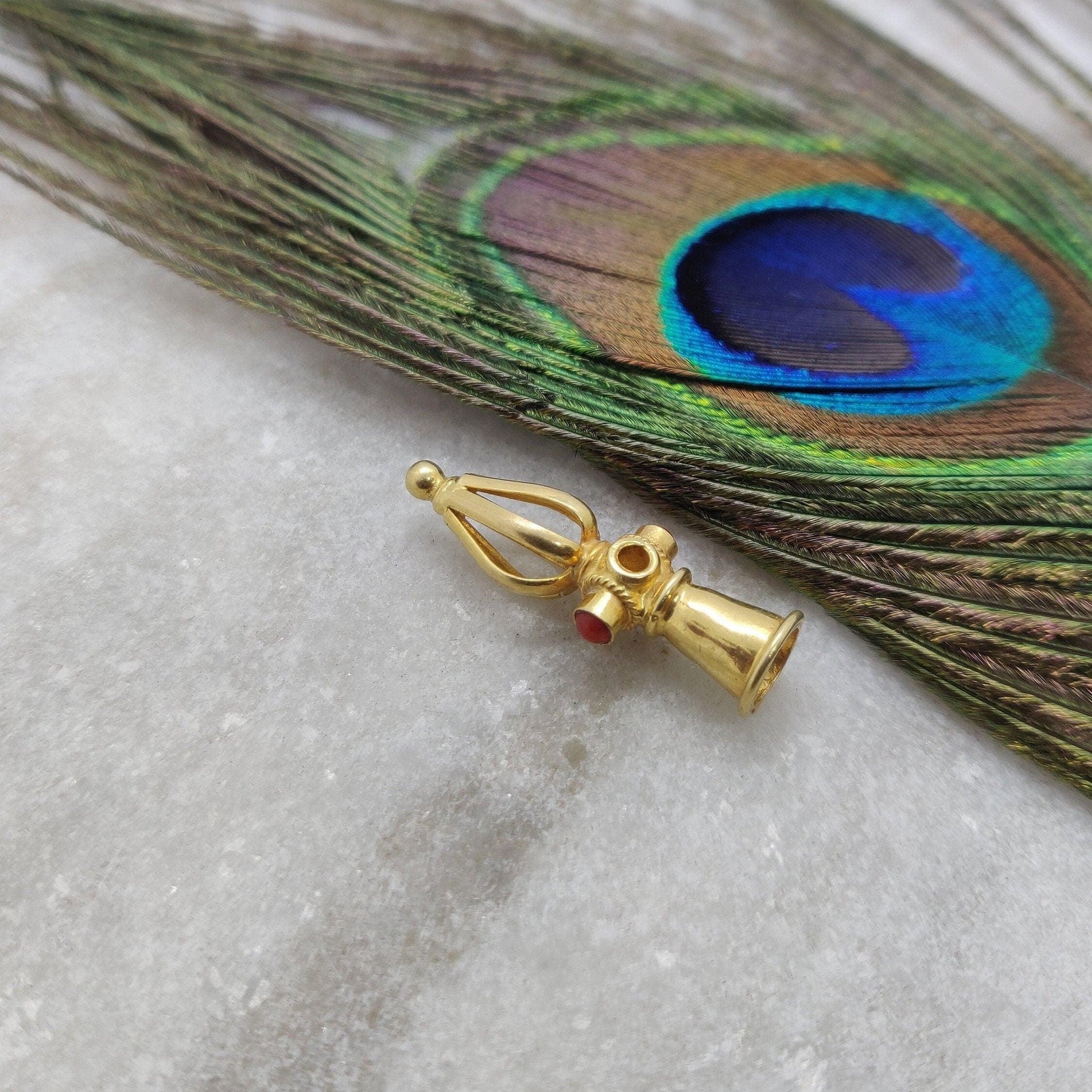 18K Yellow Gold Coral Stone Beads Findings Handcrafted Jewelry