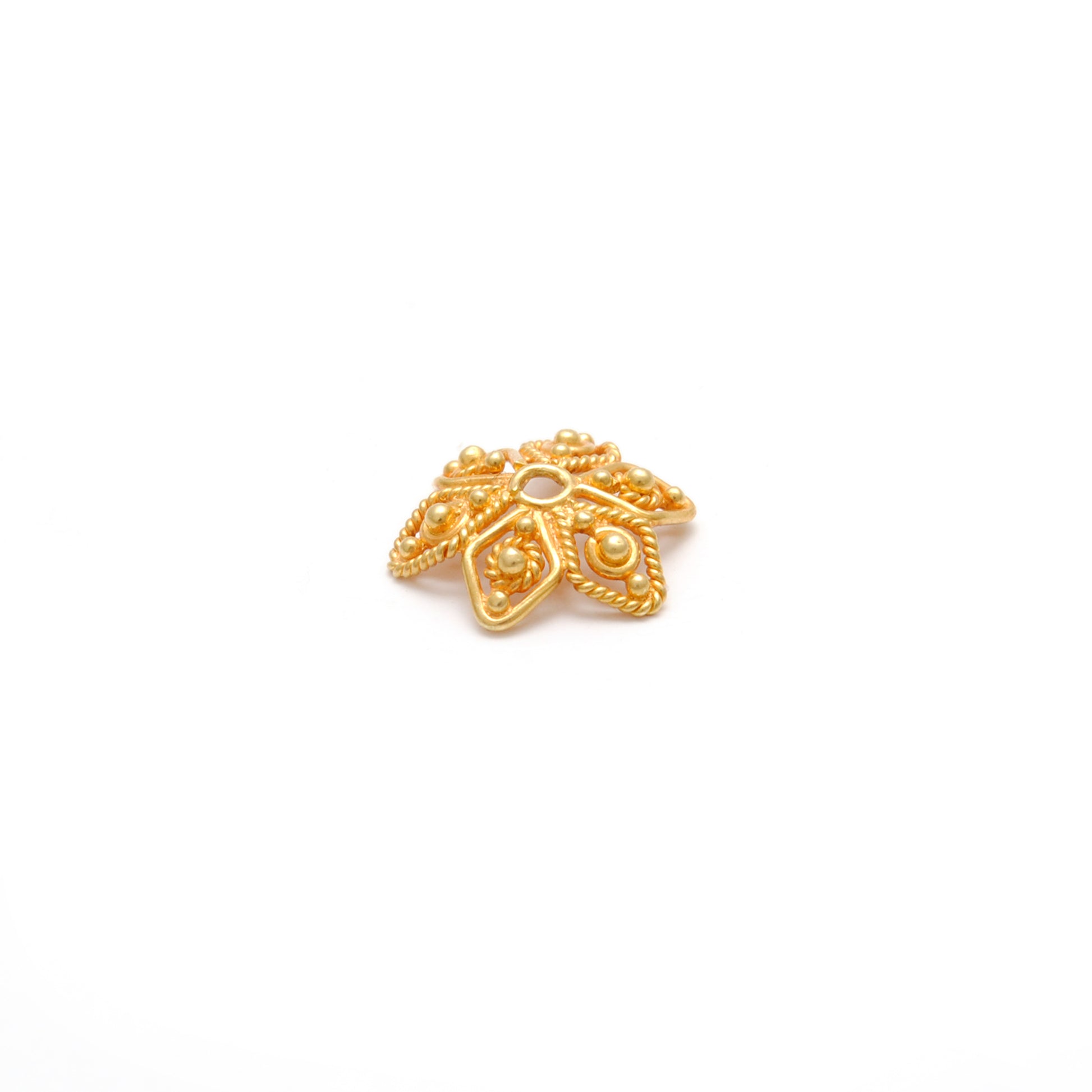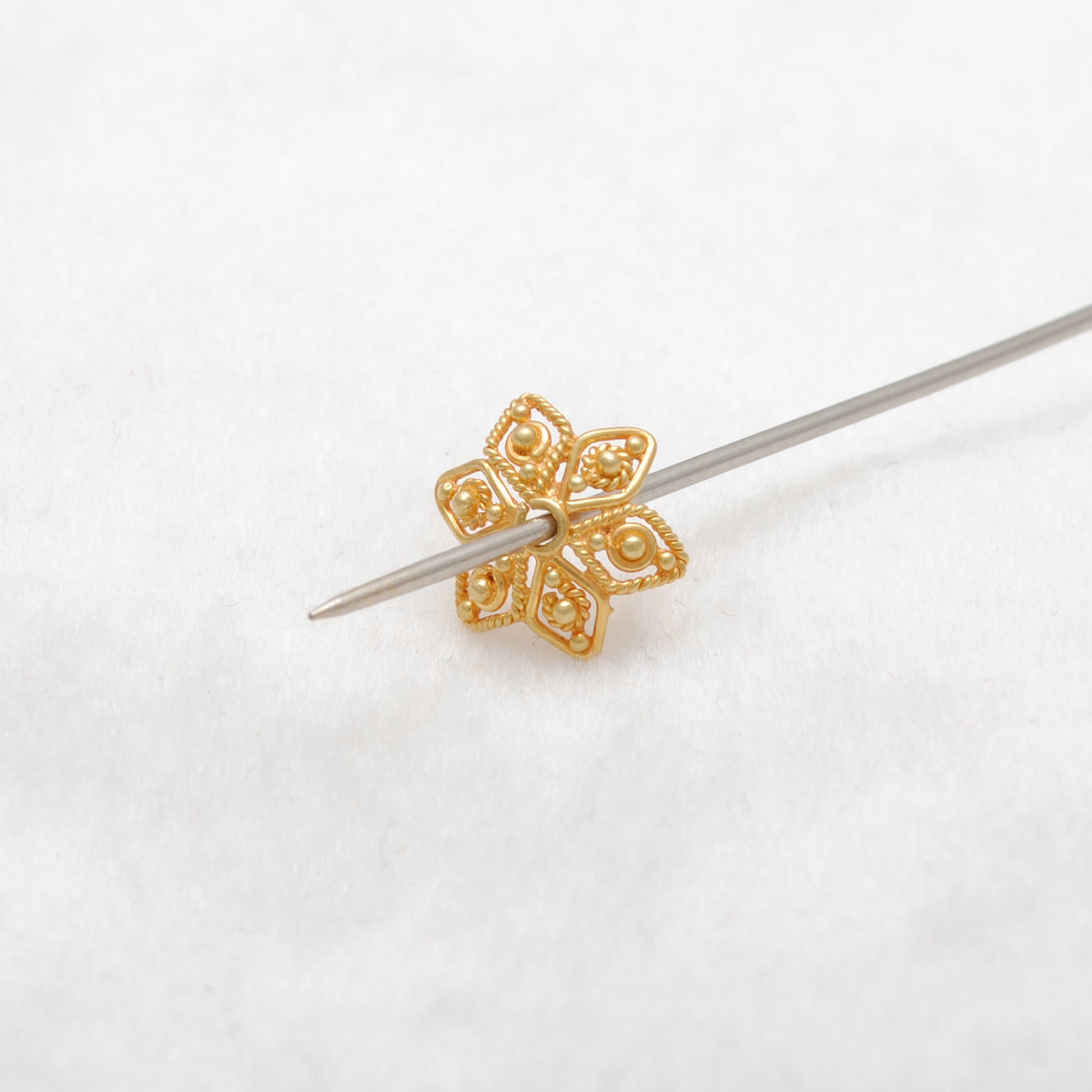 This Filigree 18k Yellow Gold Spacer Bead Cap Finding Craft is the perfect addition to any jewelry maker's toolkit. Made with high-quality gold, this bead cap adds a touch of elegance and sophistication to any design. Its intricate filigree design adds texture and depth to your piece, making it stand out.