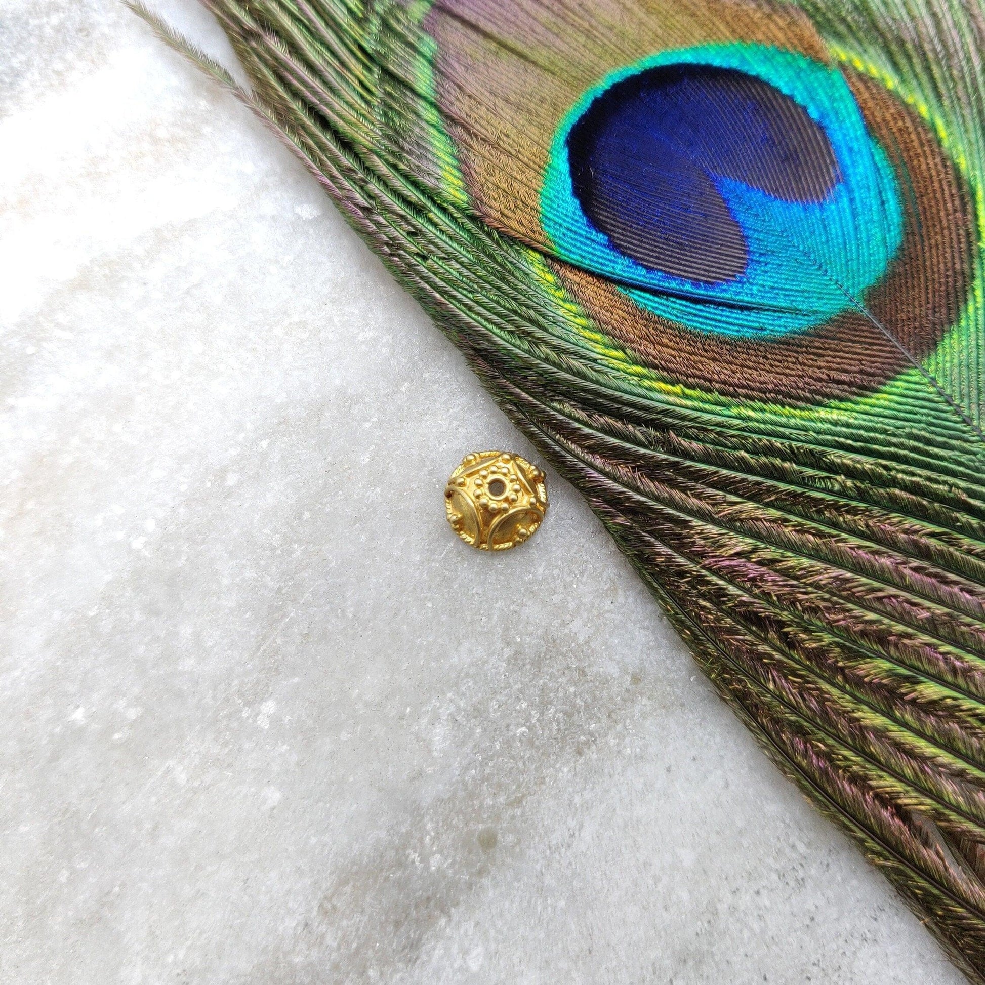 18K Yellow Gold-Plated Handcrafted Spacer Bead Cap for Beads Finding Supplies 8mm