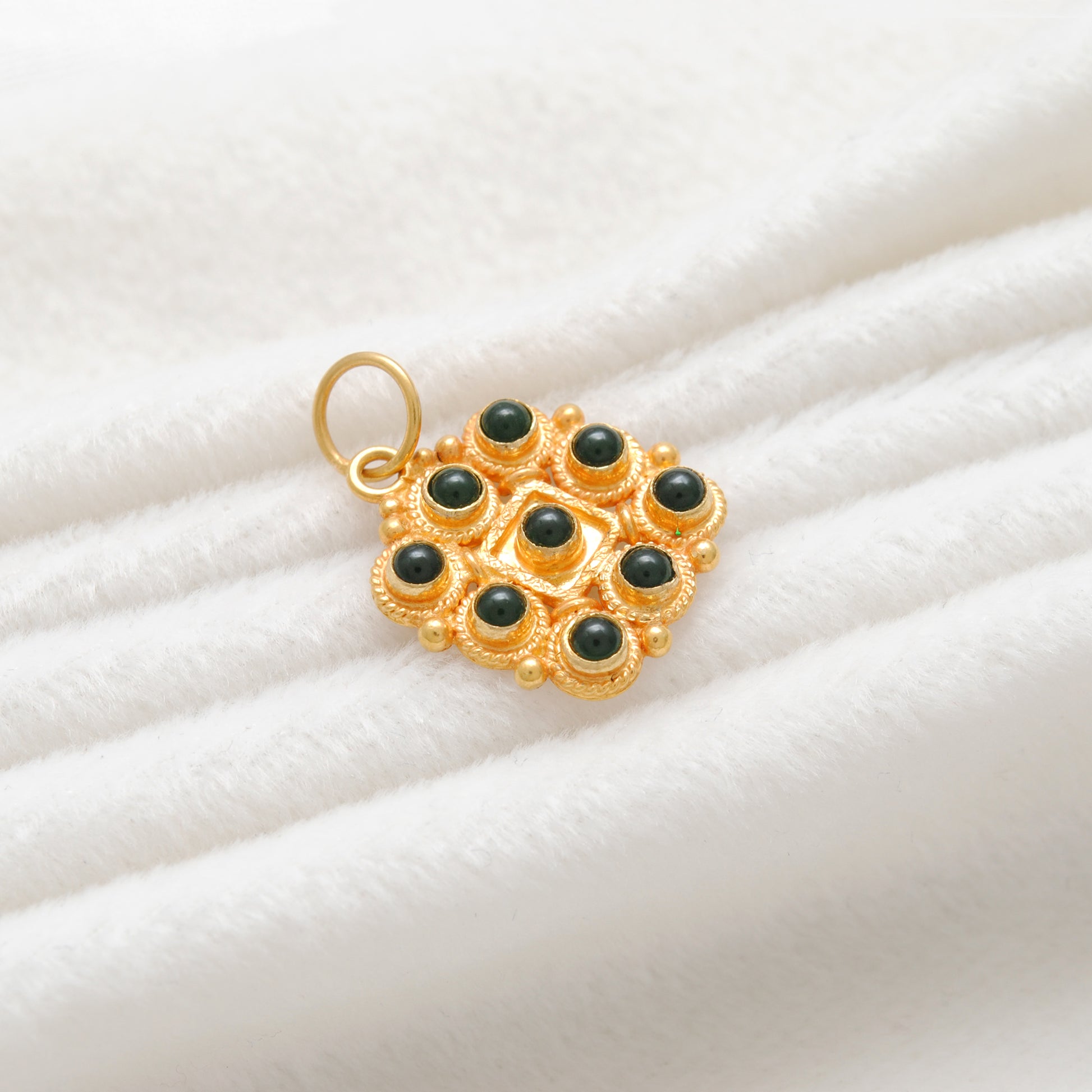 This 15mm solid 18K gold handmade charm features a stunning stone, adding elegance to your collection. Crafted with precision and high-quality materials for lasting durability, it elevates any outfit.