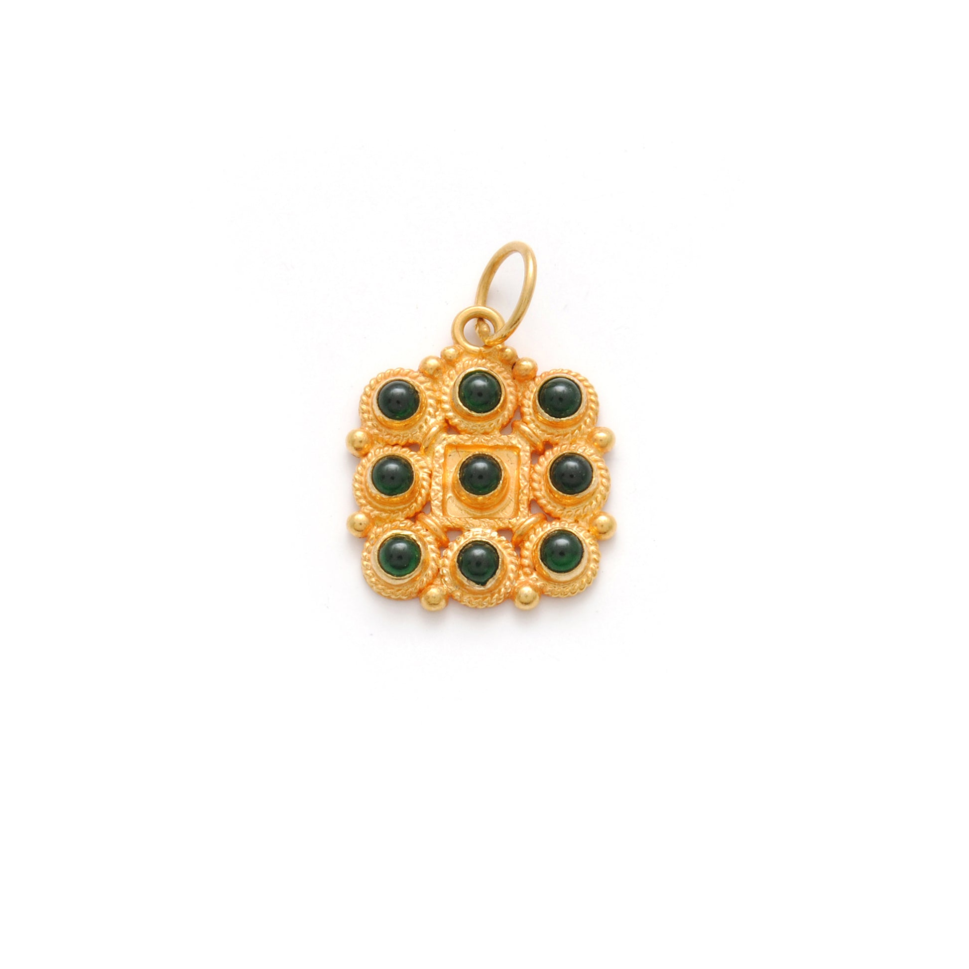 18k Yellow Gold Stone Studded Cushion Charm Pendent 15mm