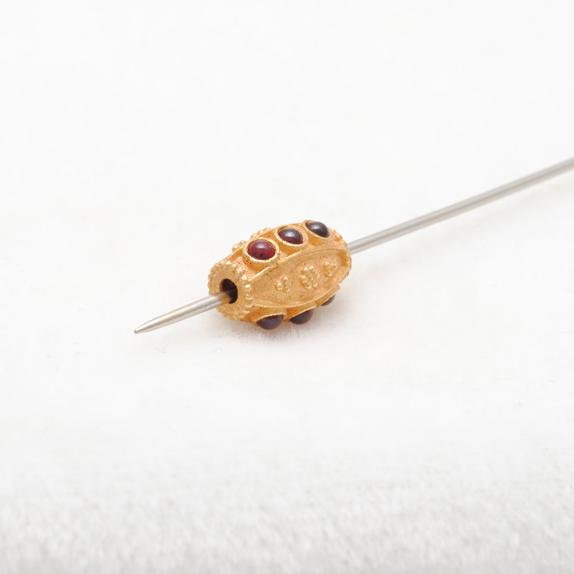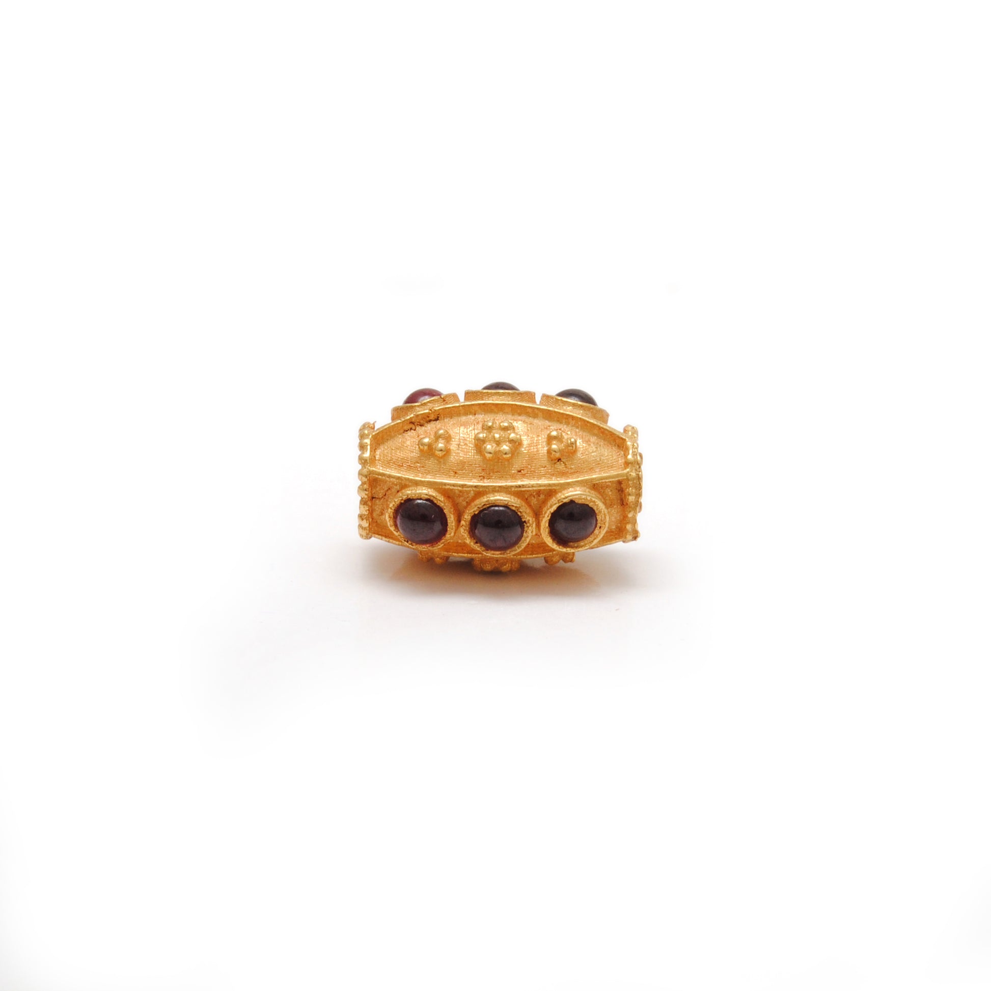 18KT Gold Ruby Stone Studded Fancy Beads - 12X8mm