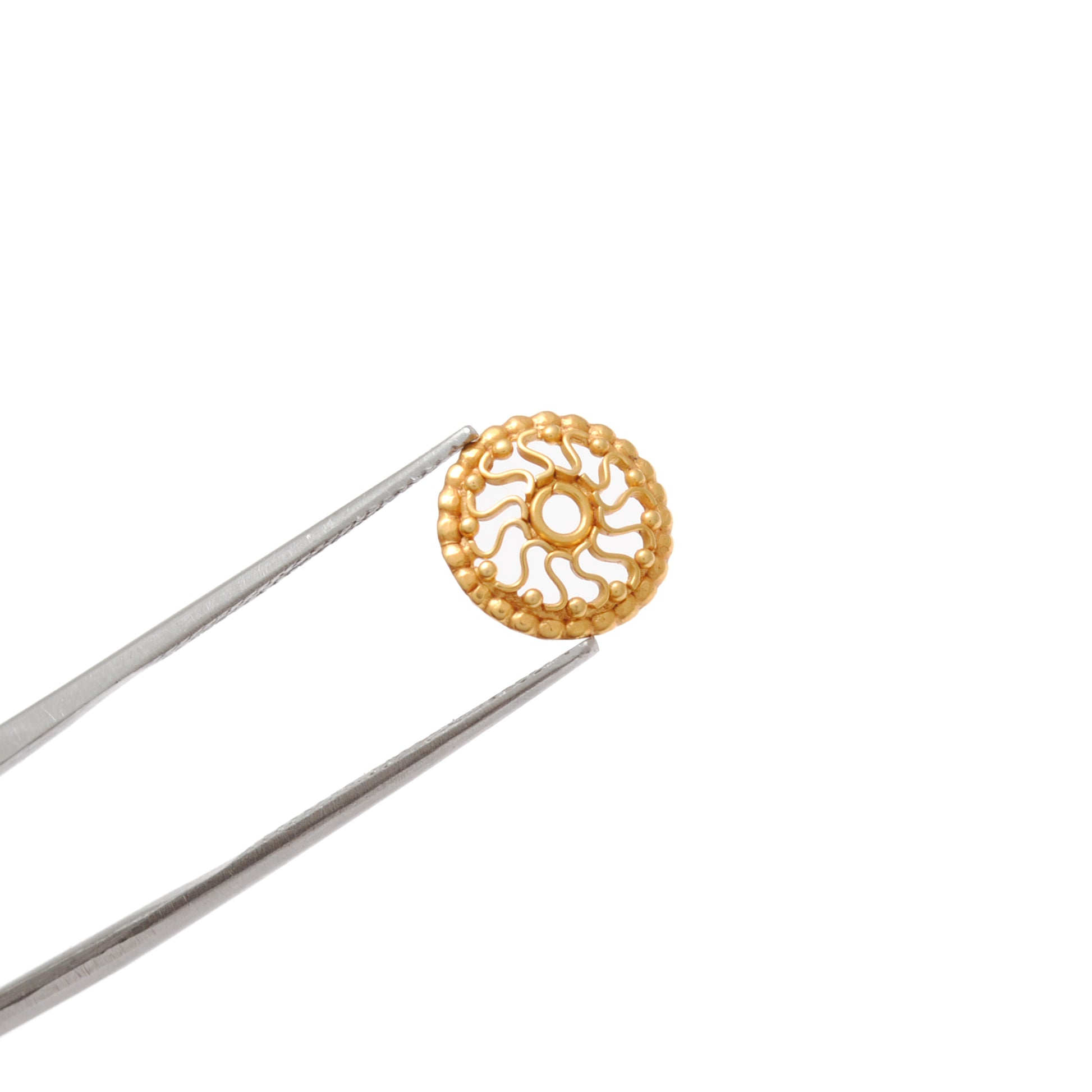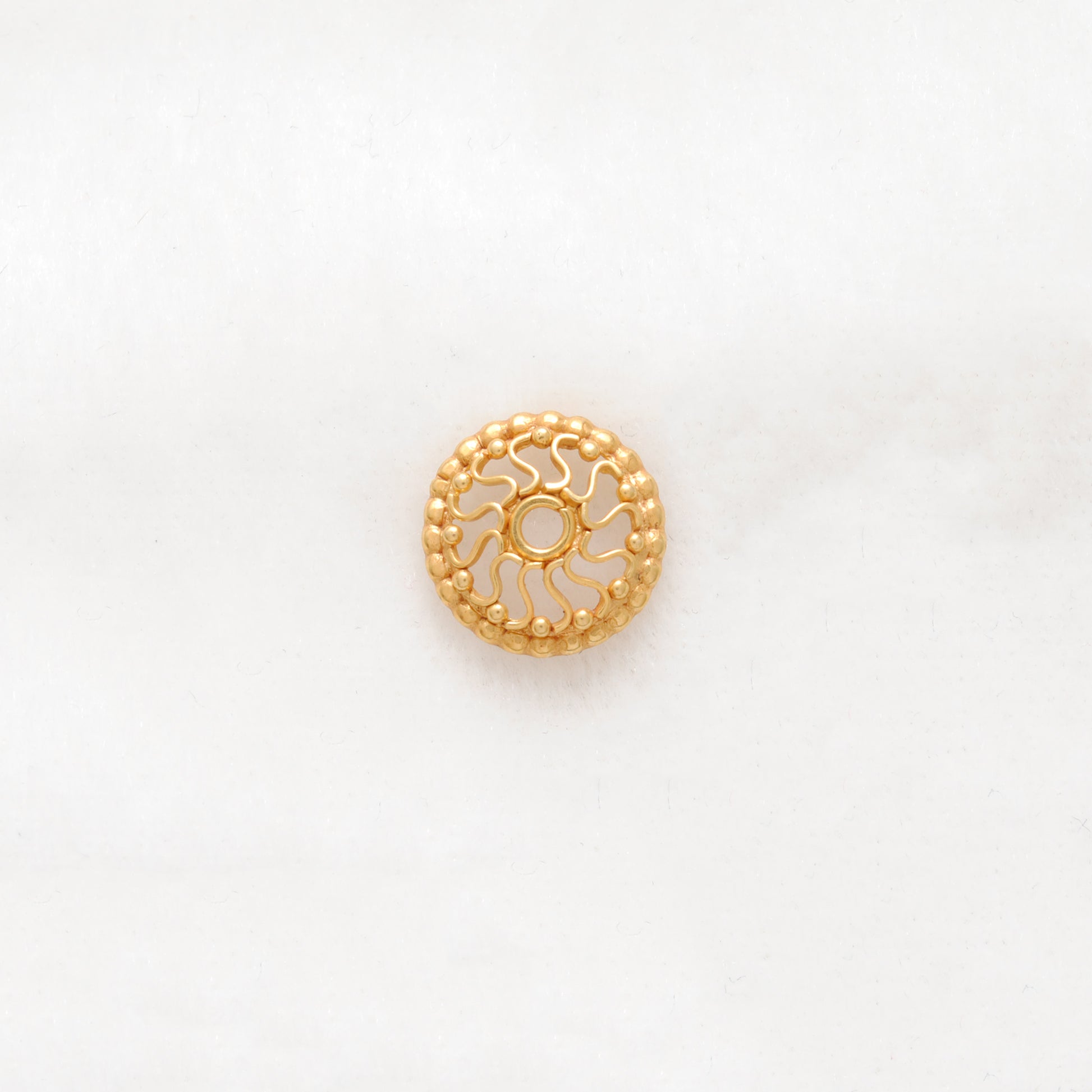 18KT Gold Wheel Spacer Bead Cap For Jewelry with Unique Wheel Motif