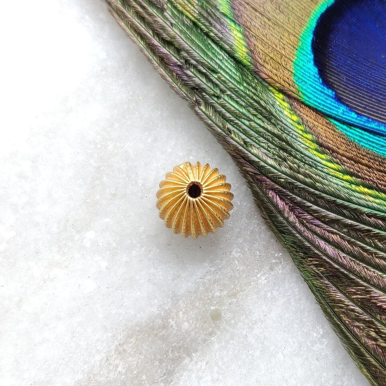 18KT Solid Yellow Gold Corrugated Gold Spacer Bead Components 10mm