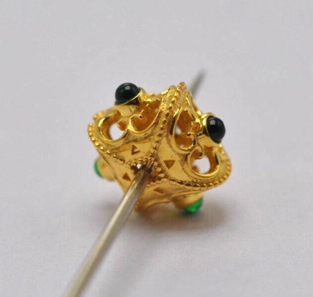 18k Gold Cushion Spacer Bead with Emerald. Made with high-quality gold, this bead adds a touch of sophistication and luxury to any jewelry piece.