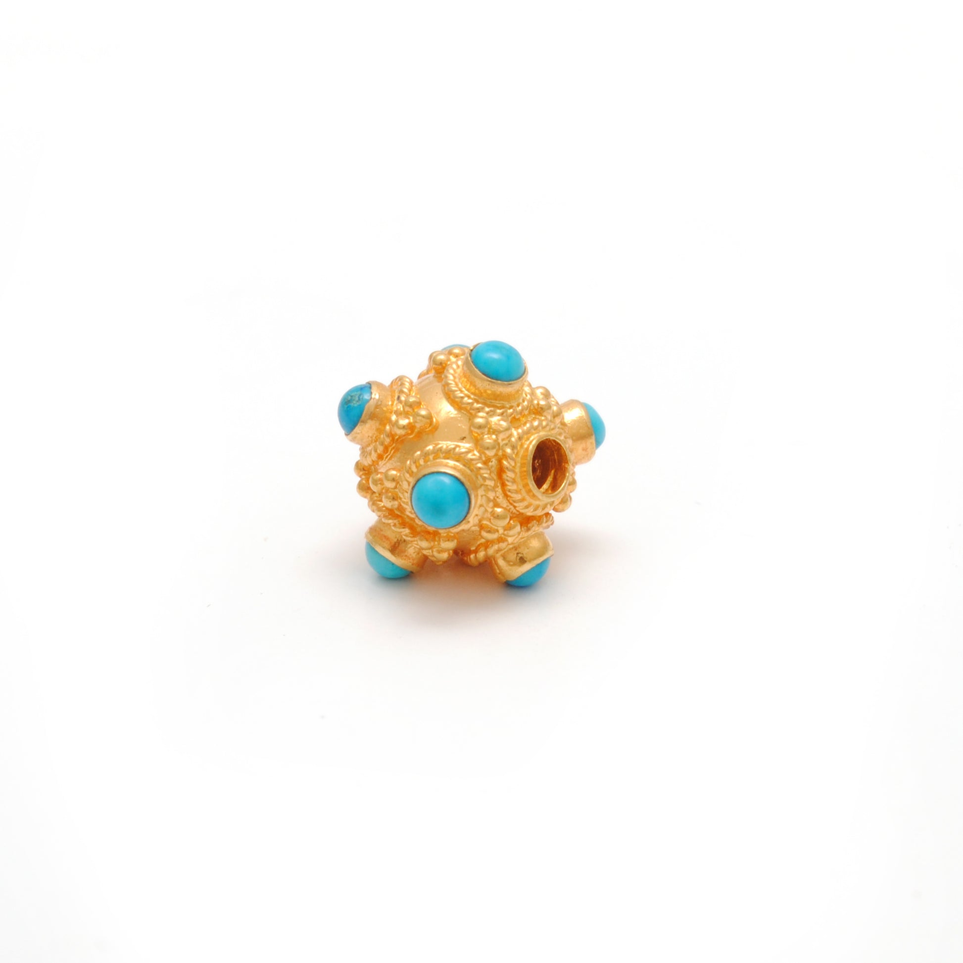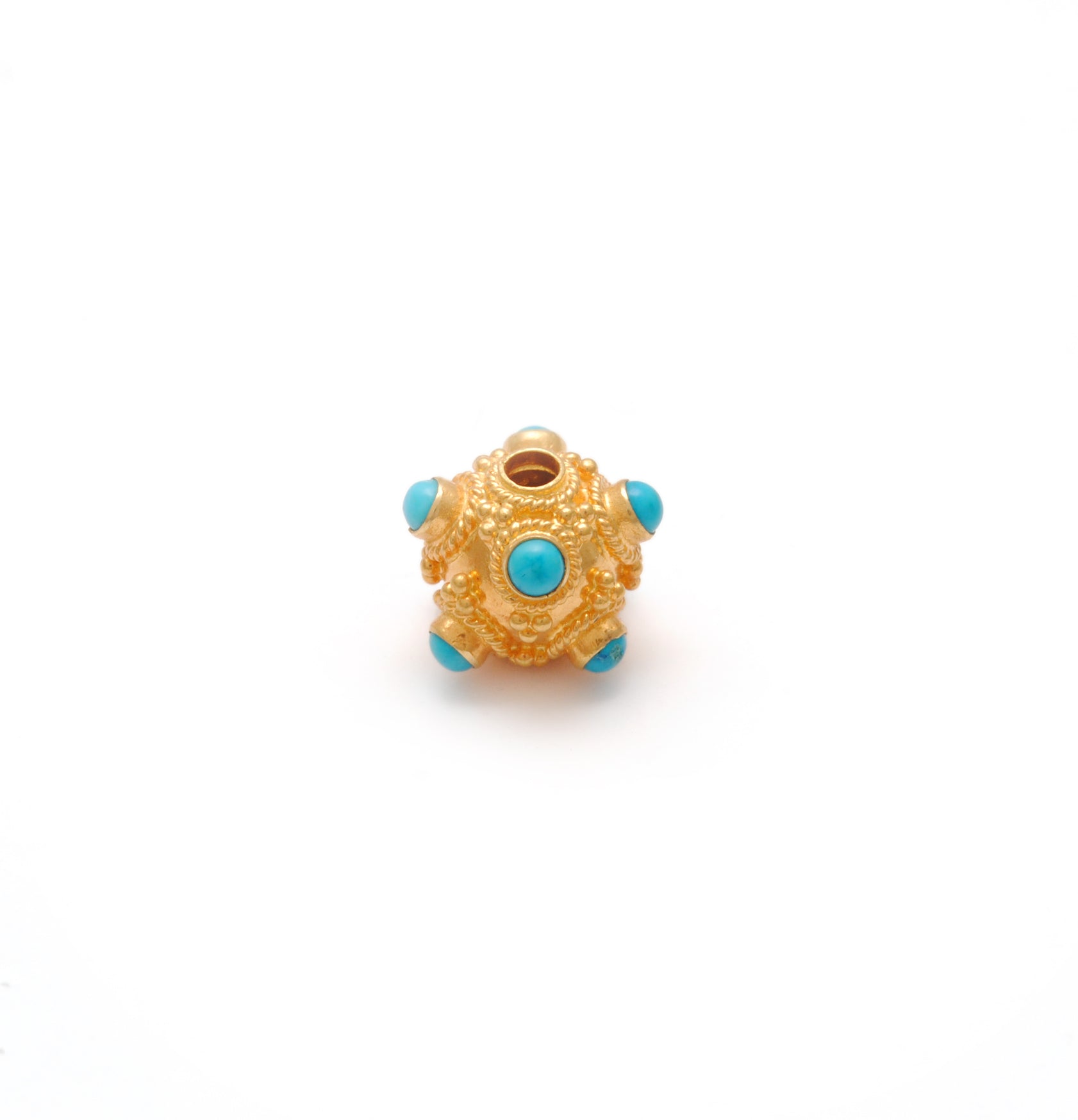 18k Solid Gold Ball Bead, studded with a vibrant Turquoise Gemstone. This 8.5mm bead is sure to elevate any outfit with its elegant design and luxurious materials.