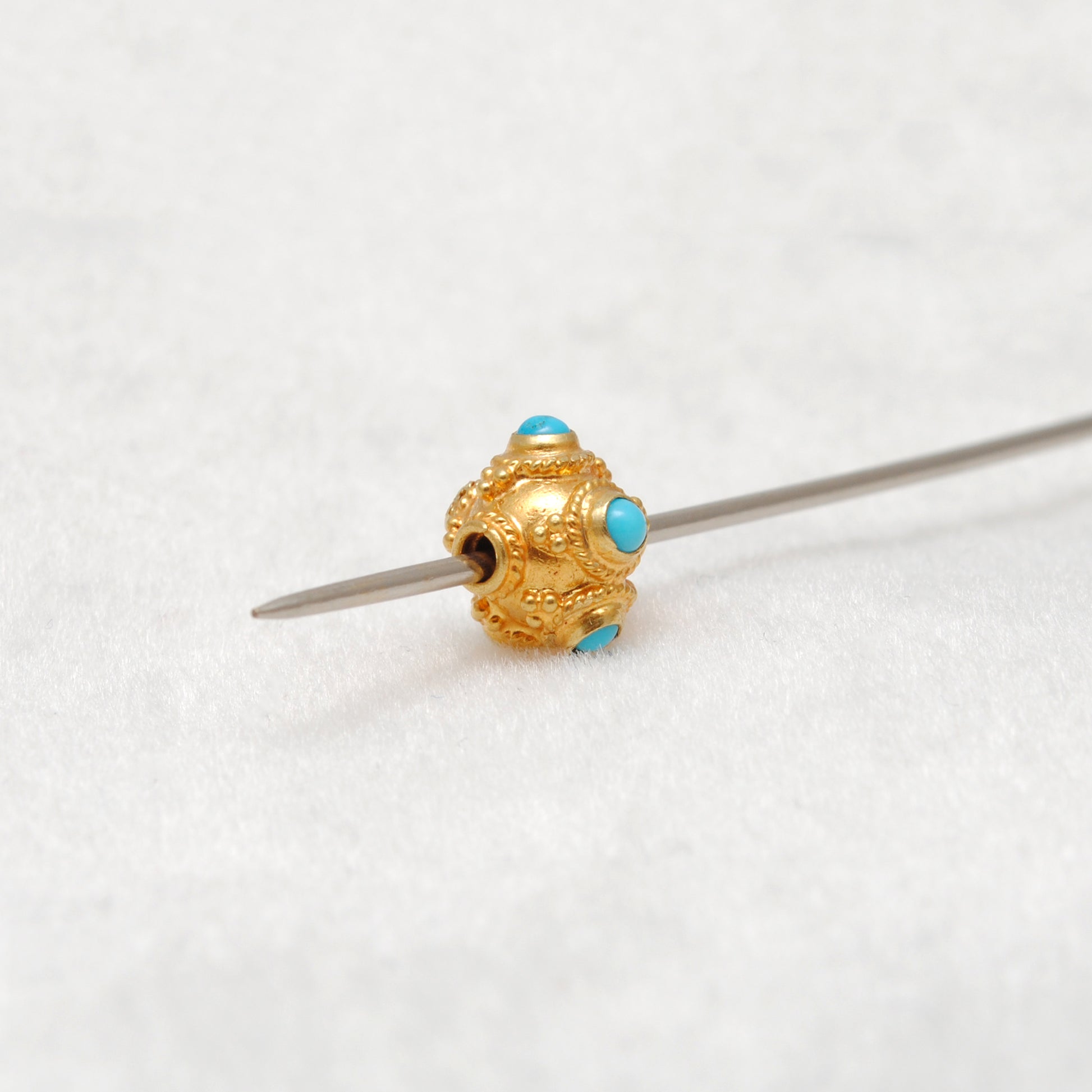 Our 7X5MM Handmade 18k Solid Gold Turquoise Round Bead is a stunning addition to any jewelry collection. Each bead is carefully crafted by hand, ensuring a unique and high-quality piece. Made from 18k solid gold, it exudes luxury and sophistication.