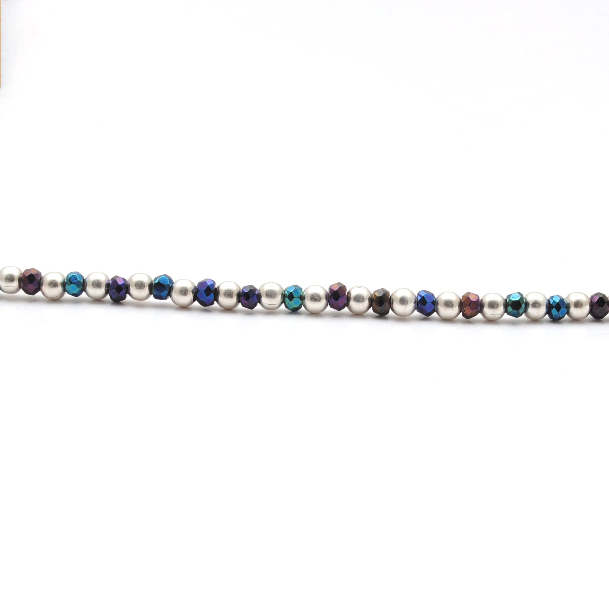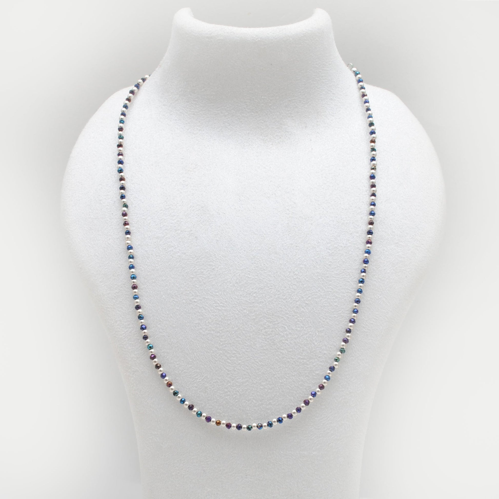 Black Spinel Blue Mystic Coated Silver Beaded Charm Necklace