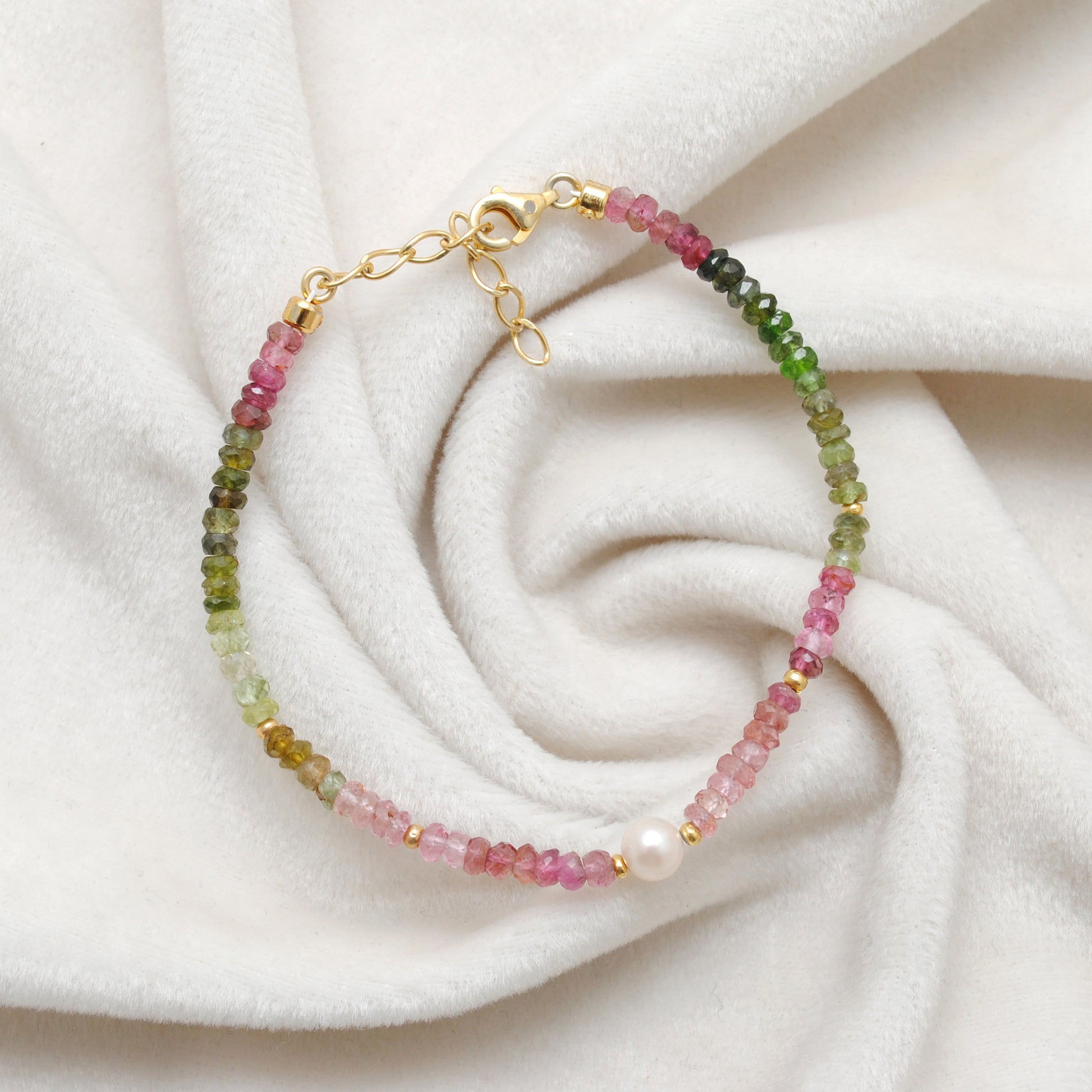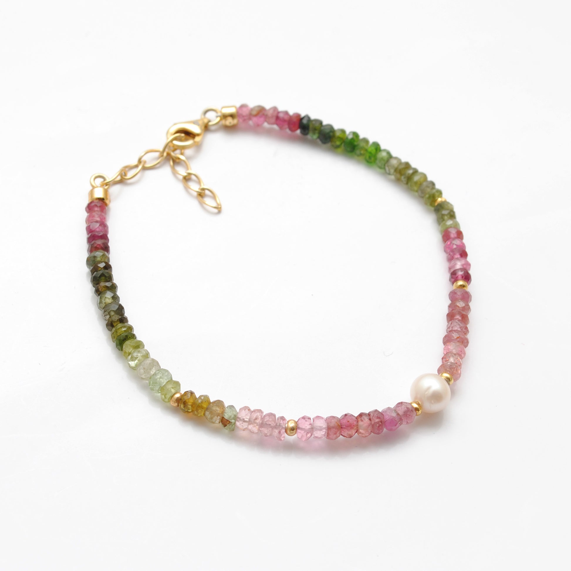 3.5mm Natural Multi Tourmaline & 5.5mm Pearl Beaded 8" Bracelet