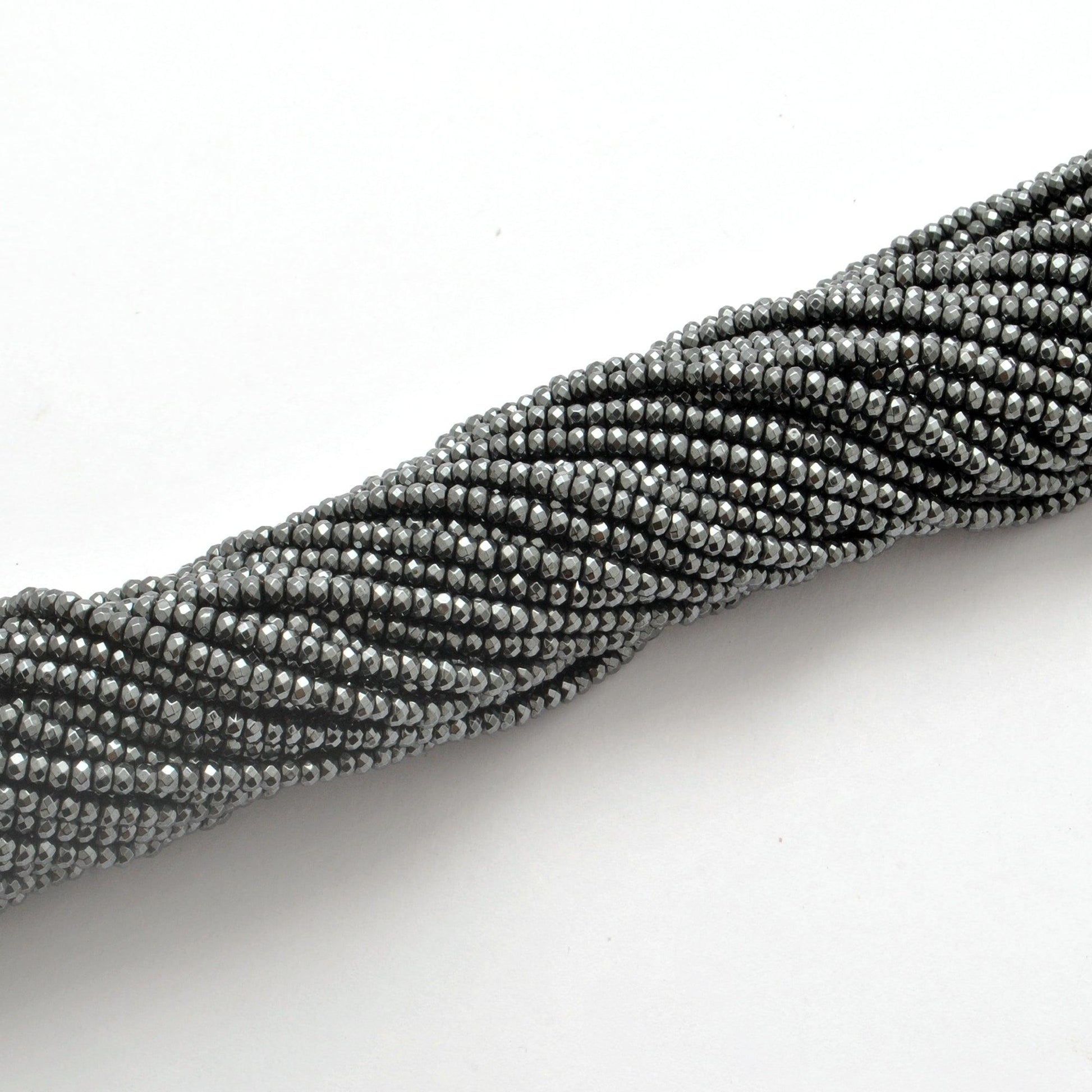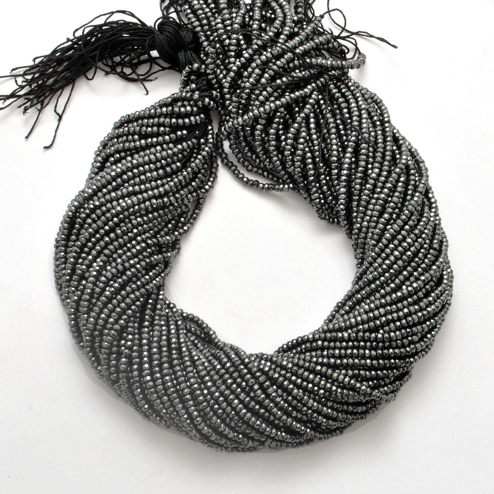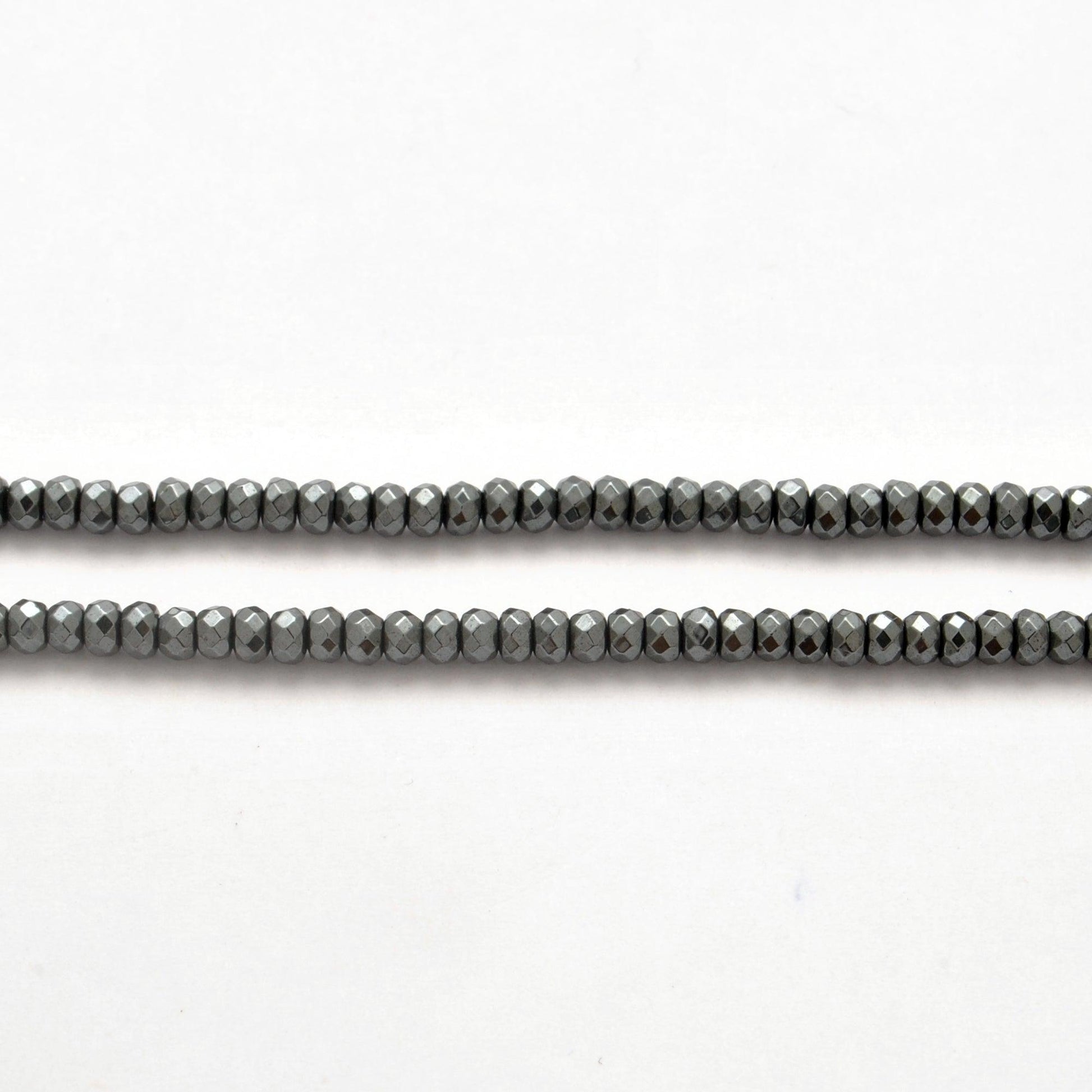 Black Hematite Faceted Rondelle Gemstone Beads 15" Strand