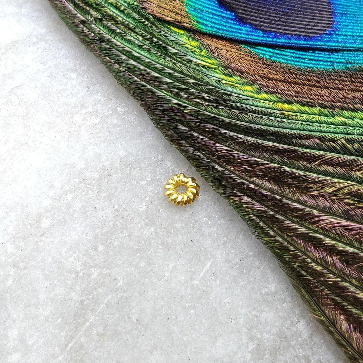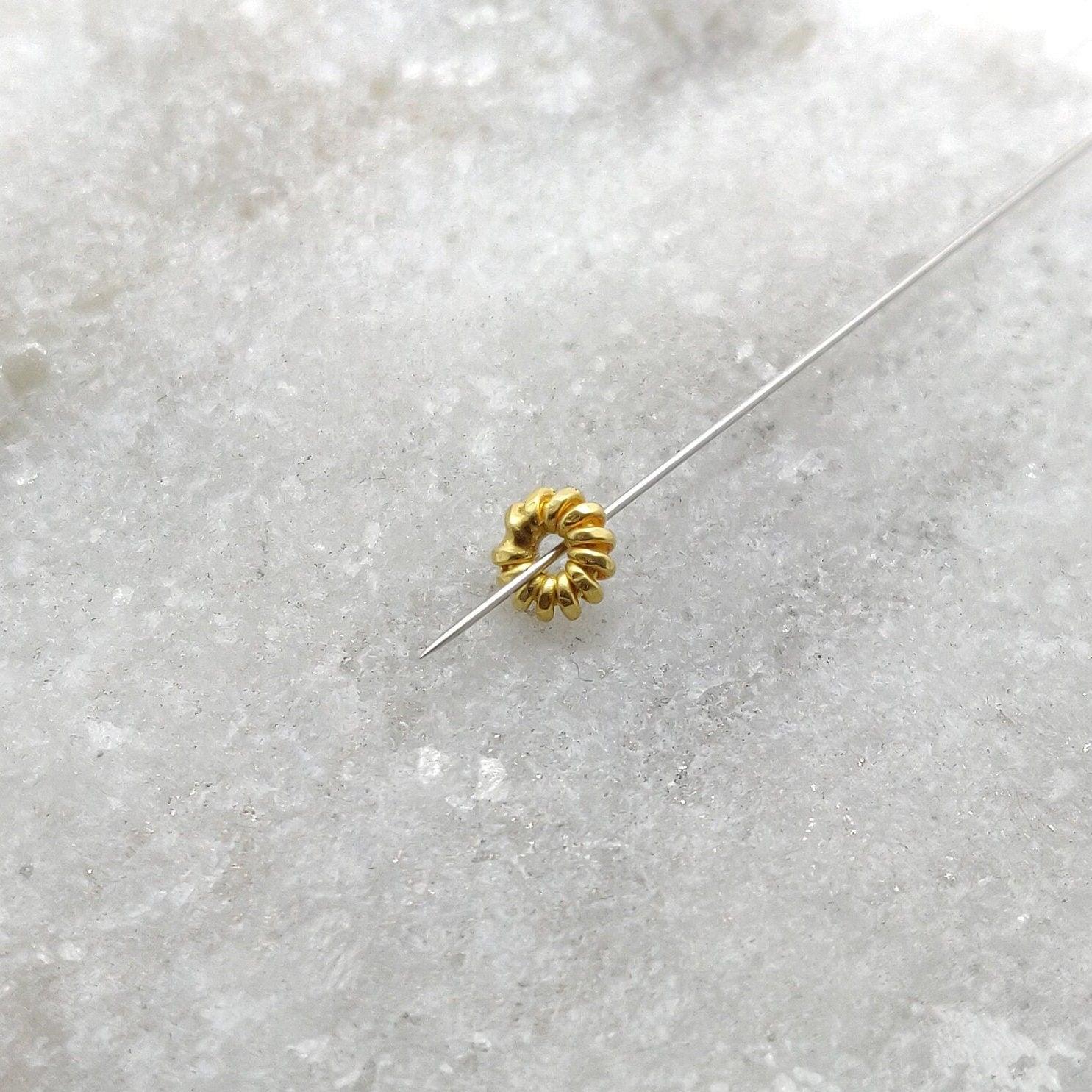 Expertly crafted for the jewelry-making industry, this 4mm 18k yellow gold wheel spacer finding adds a touch of luxury to any piece. With its precision-cut design and durable construction, it is the perfect addition to your jewelry collection. Elevate your designs with this high-quality finding.