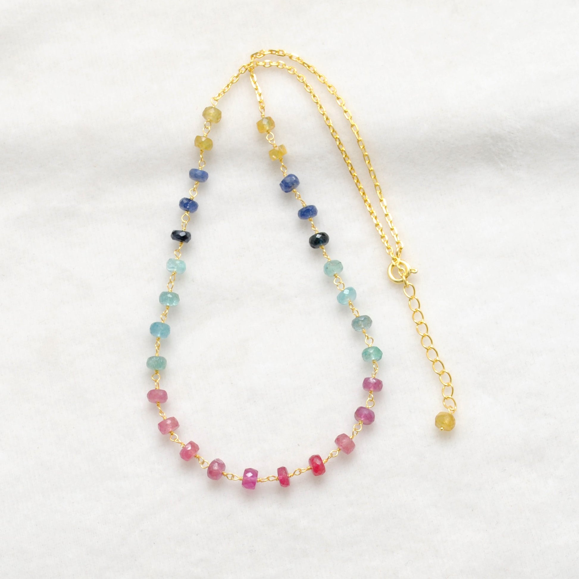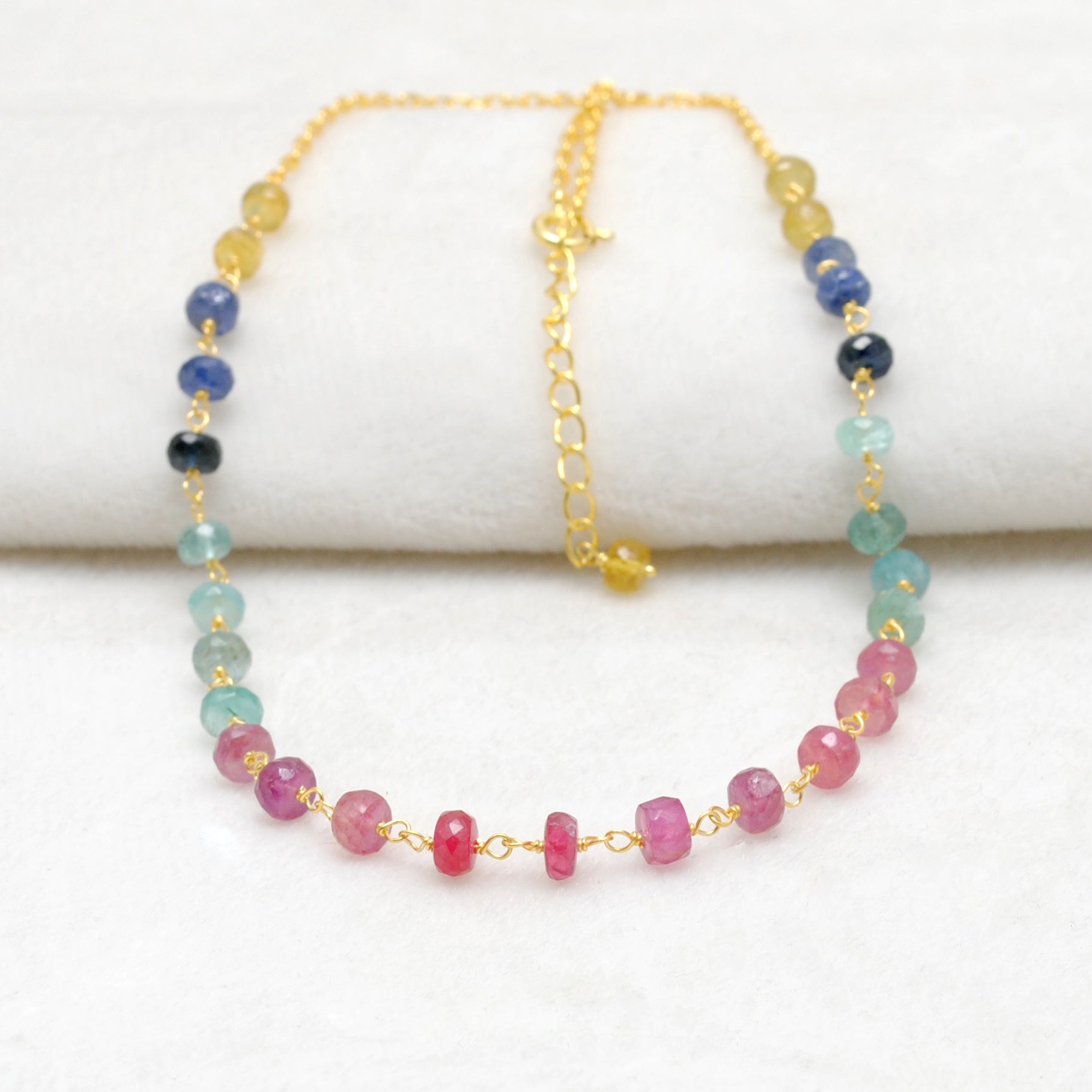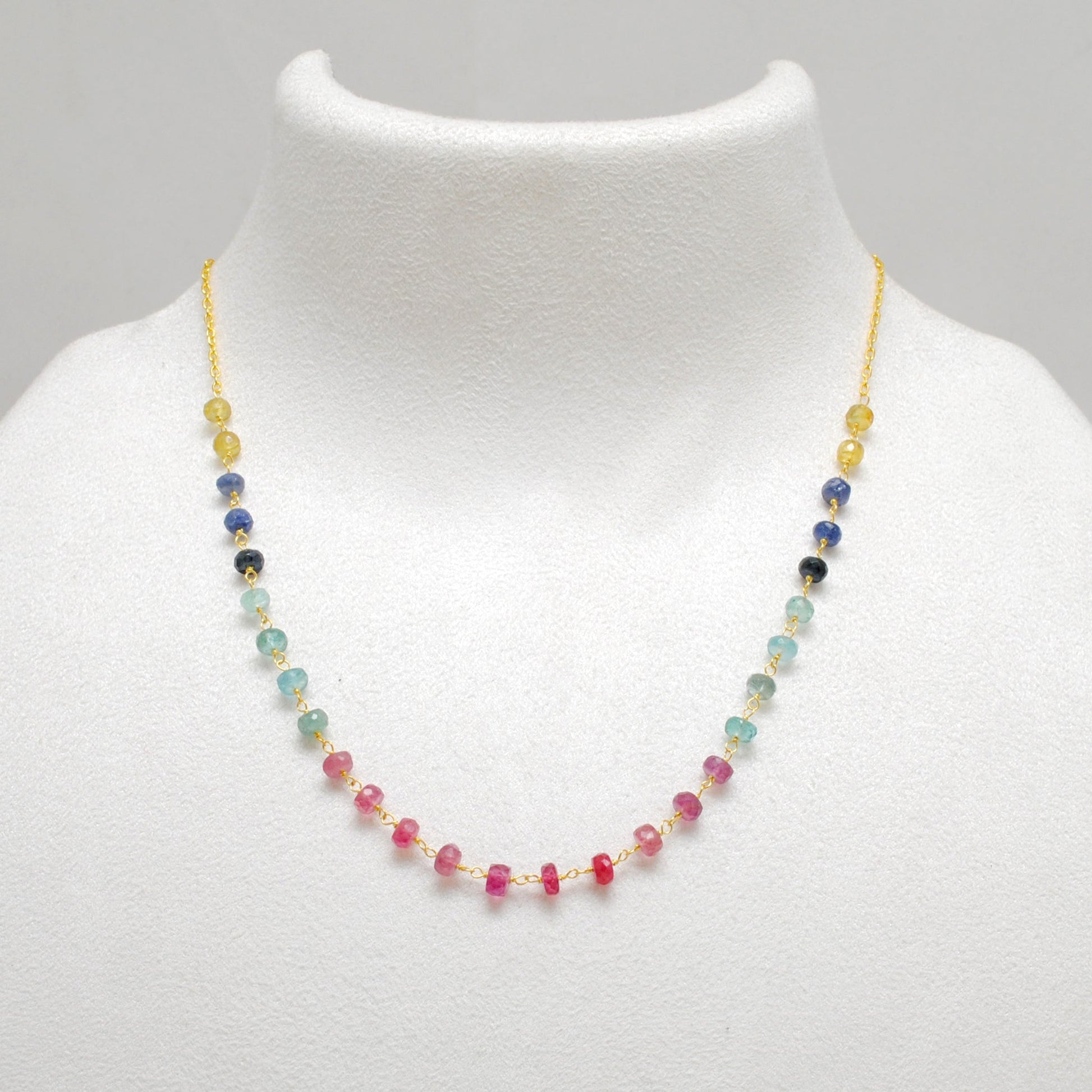 Multi Sapphire 5mm 18k Gold Necklace 18"