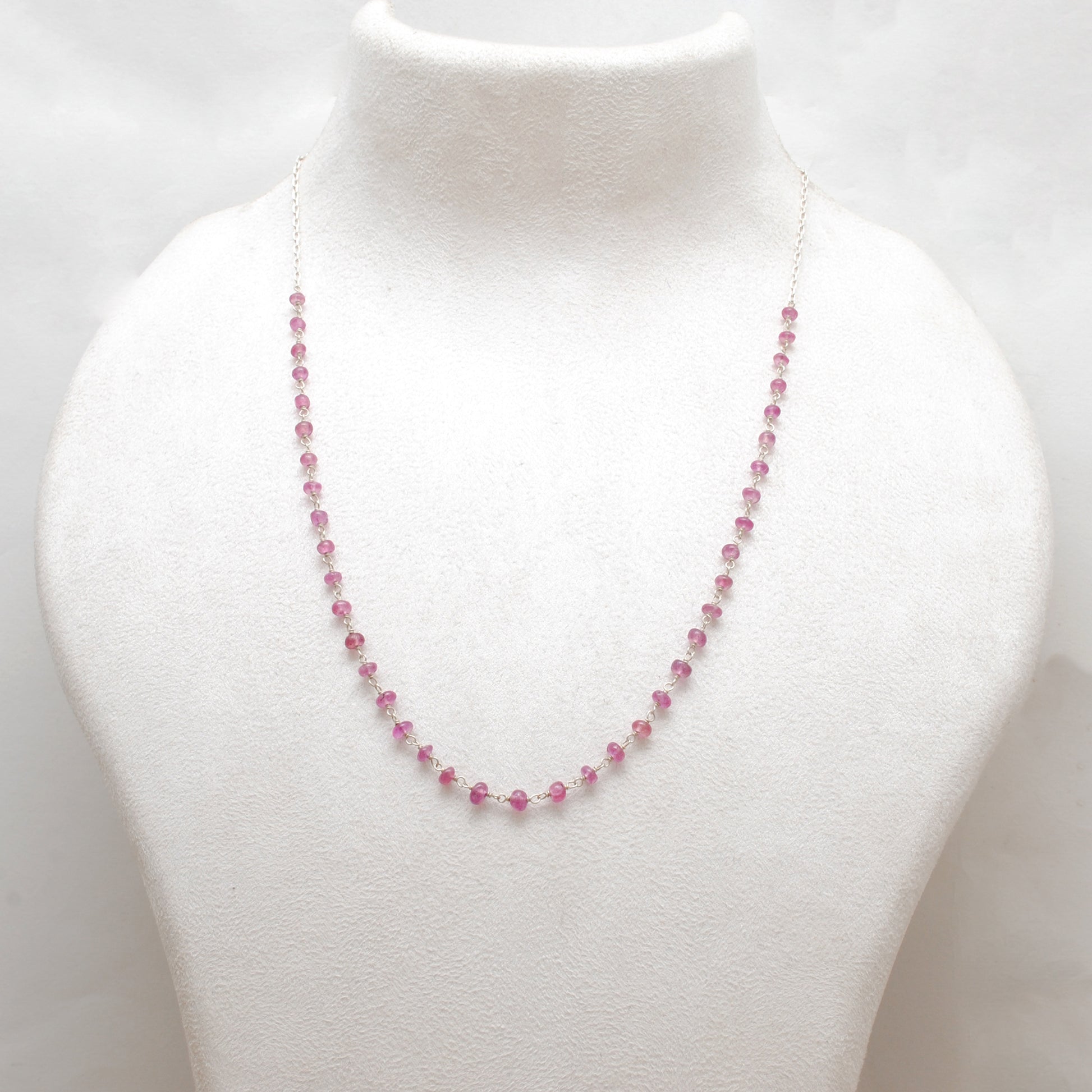 5mm Ruby Beaded Necklace – Faceted Rondelle Gemstones on 925 Sterling Silver